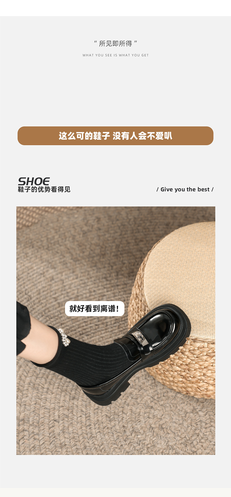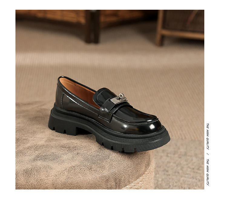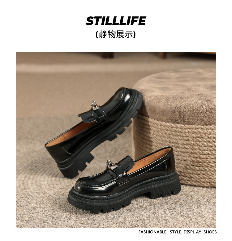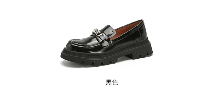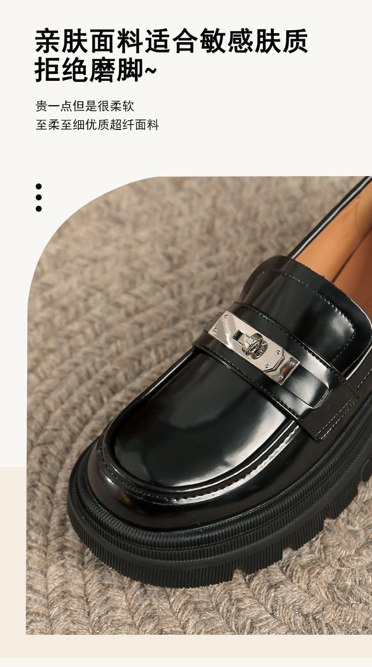 2025年秋冬季黑色厚底乐福鞋女猪腰子鞋百搭小皮鞋英伦风单鞋子