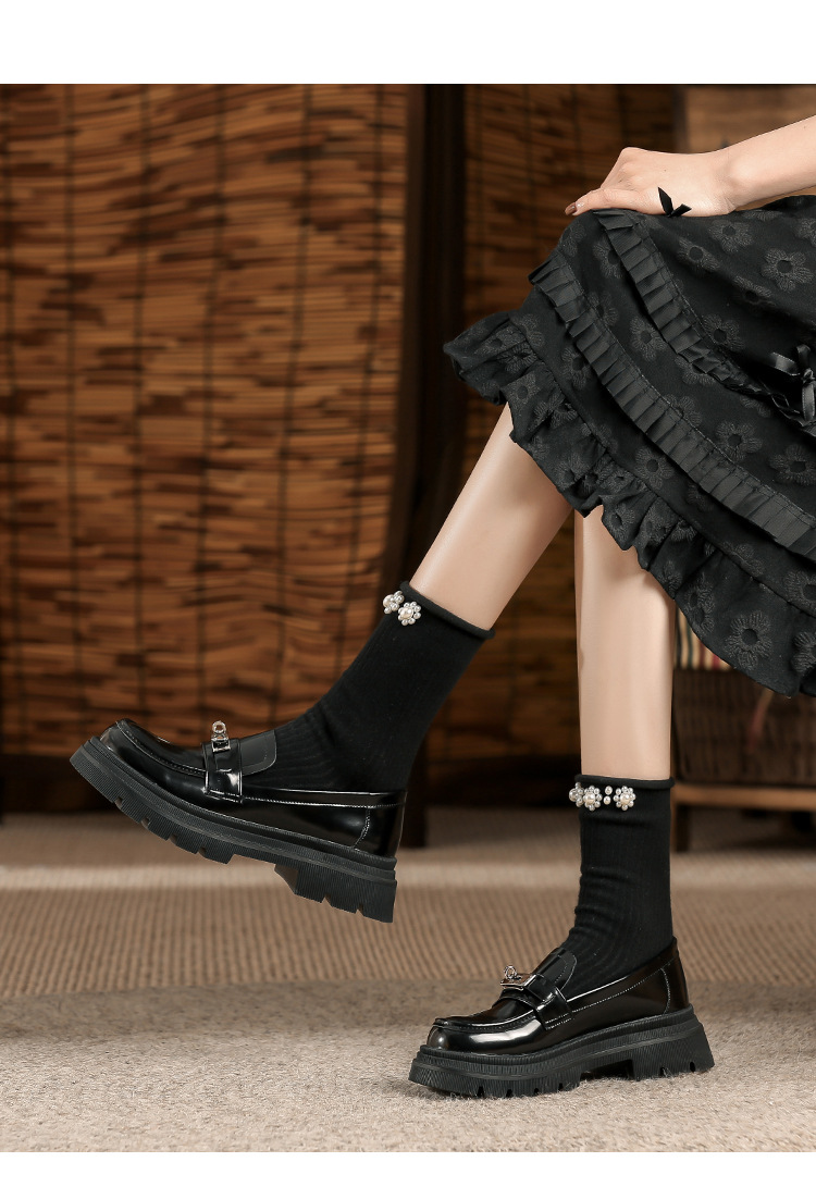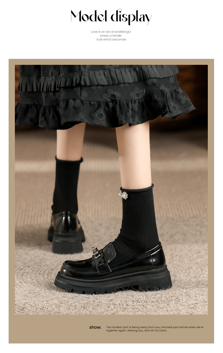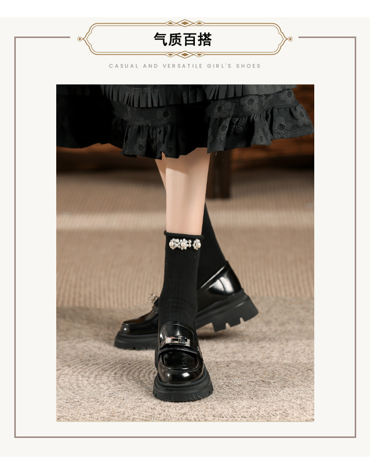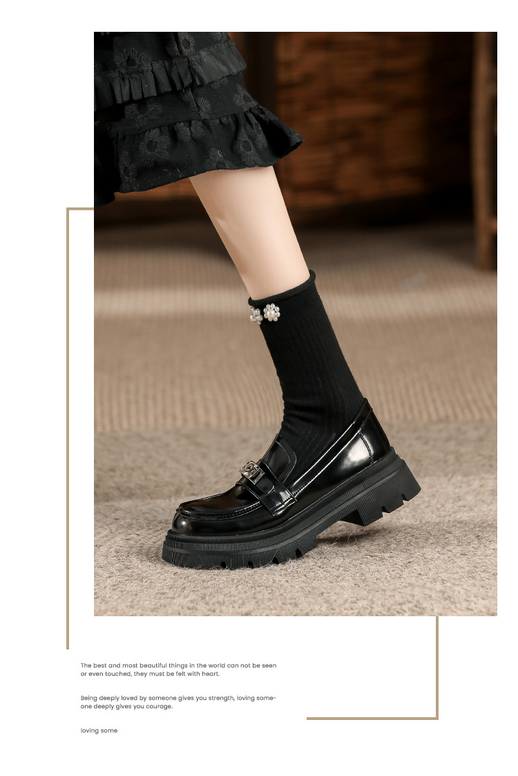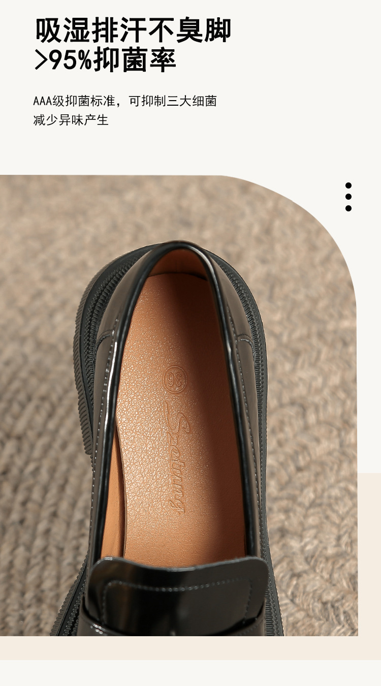 2025年秋冬季黑色厚底乐福鞋女猪腰子鞋百搭小皮鞋英伦风单鞋子