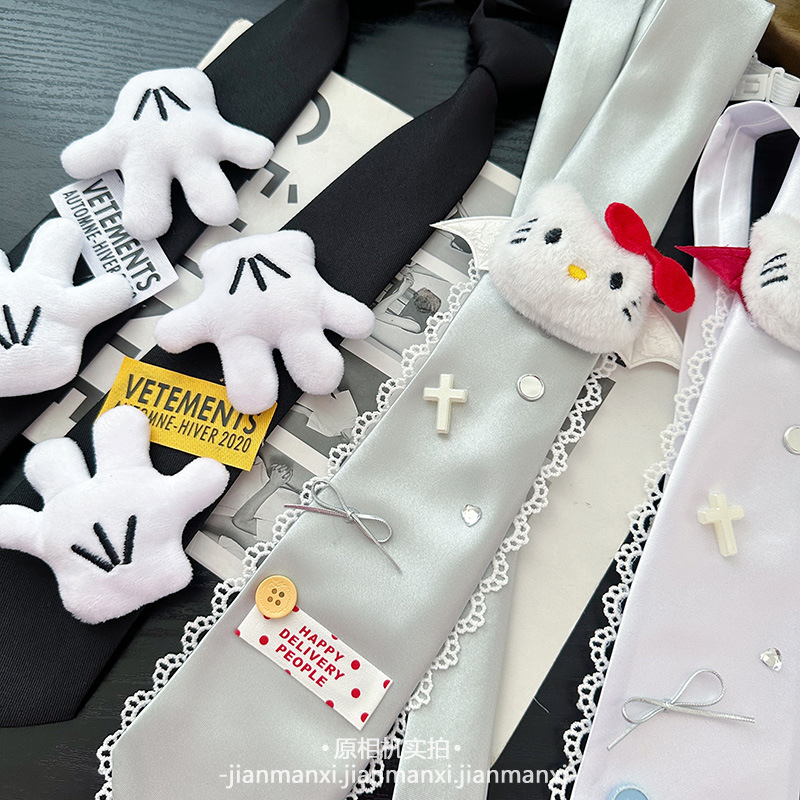 蝴蝶结手掌韩版立体亚文化免打结新款百搭学院风辣妹Y2K长条领带