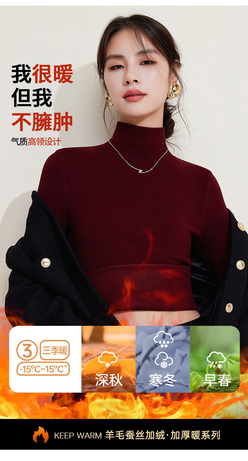 羊毛蚕丝高领保暖内衣女内穿打底衫肌底衣暖绒发热秋衣长袖上衣冬