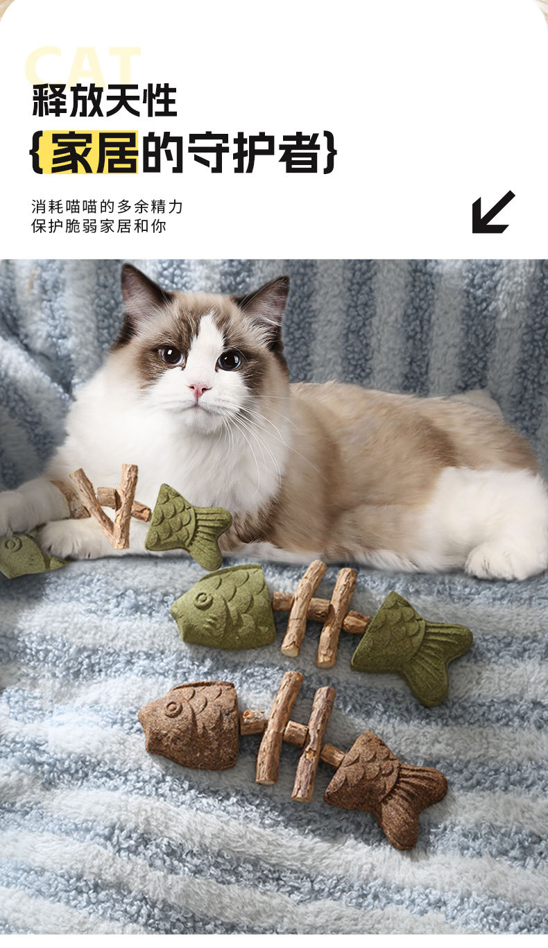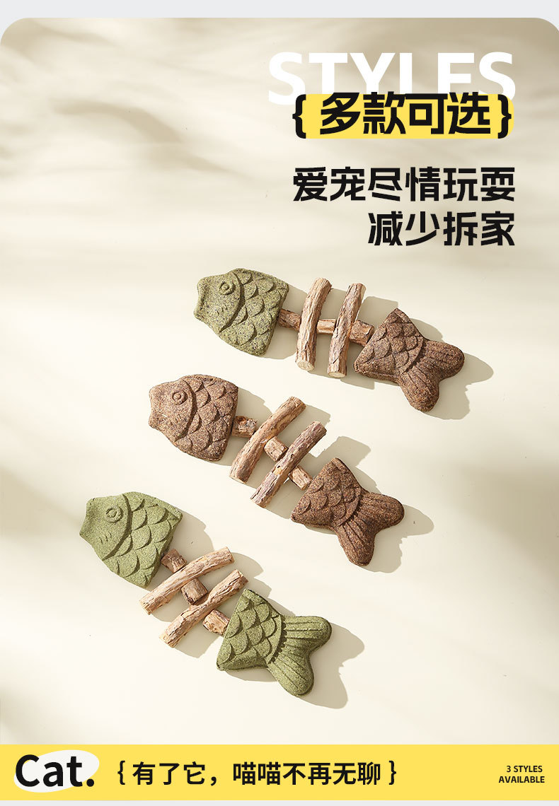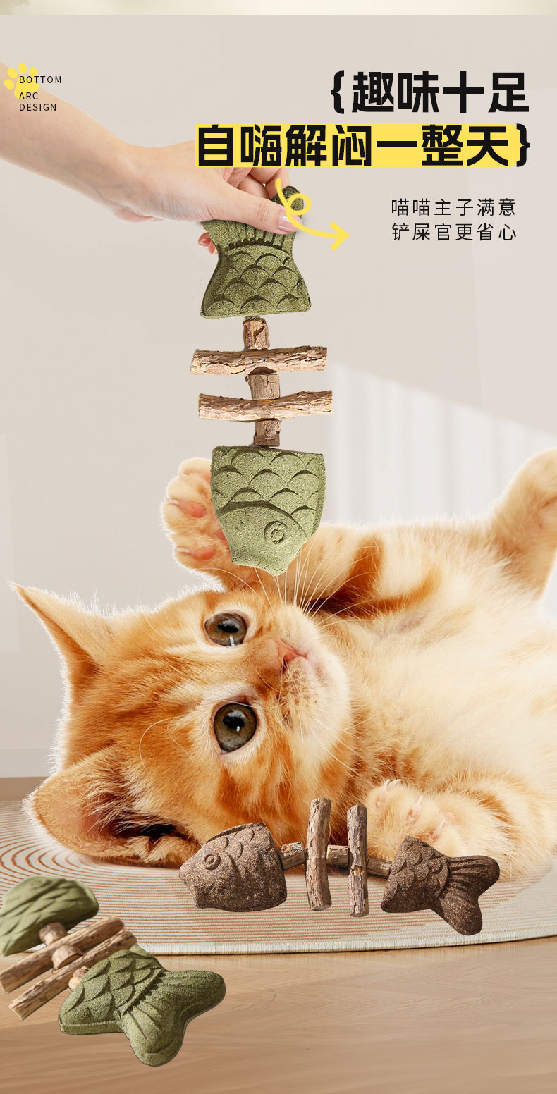 猫咪玩具鱼骨头木天蓼磨牙棒仿真鱼洁齿棒自嗨玩具创意烤鱼逗猫棒