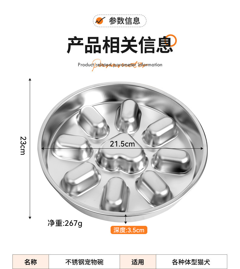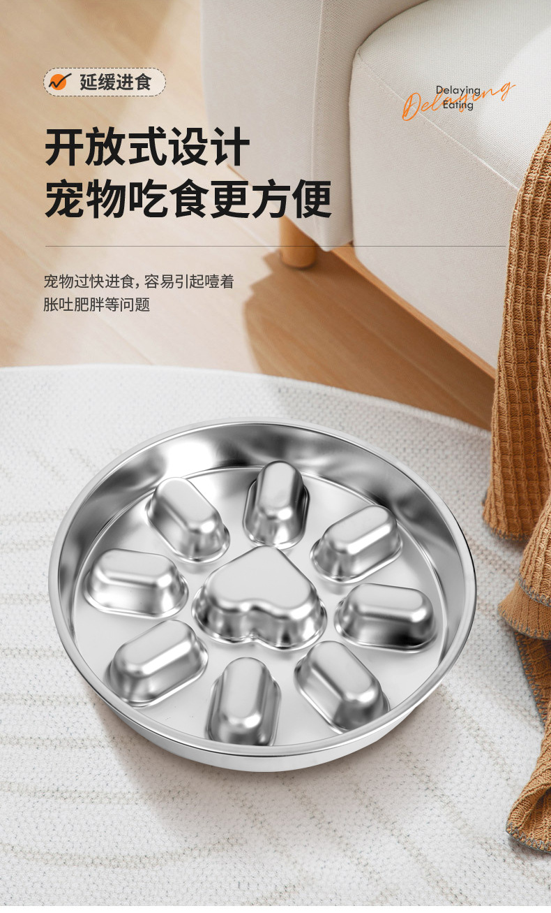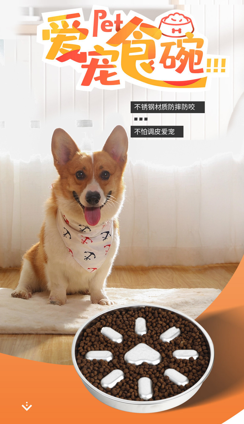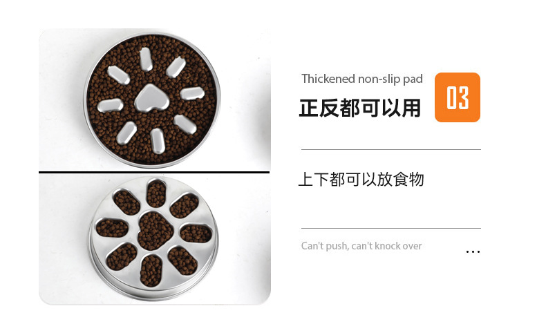 跨境加厚304不锈钢狗碗防滑慢食盘宠物缓食碗防噎狗喂食盆防打翻