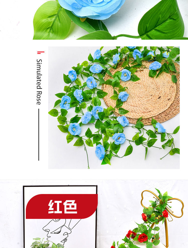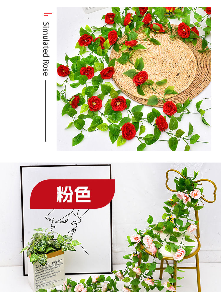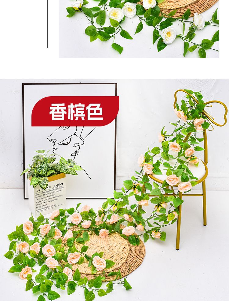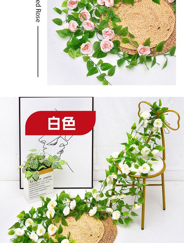 仿真玫瑰花藤条吊顶装饰假花藤蔓遮挡暖气空调水管道缠绕塑料植物