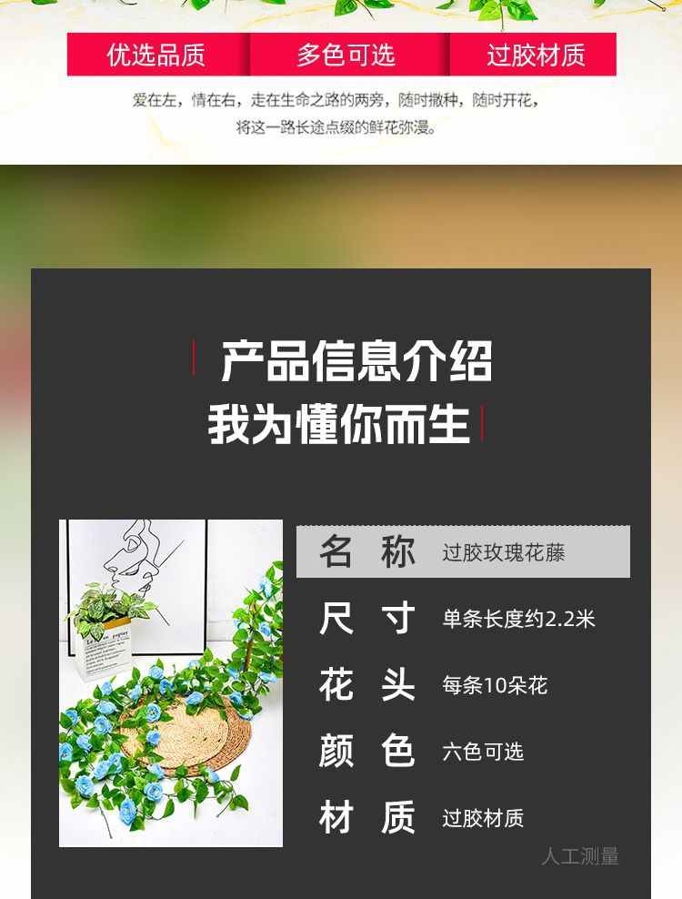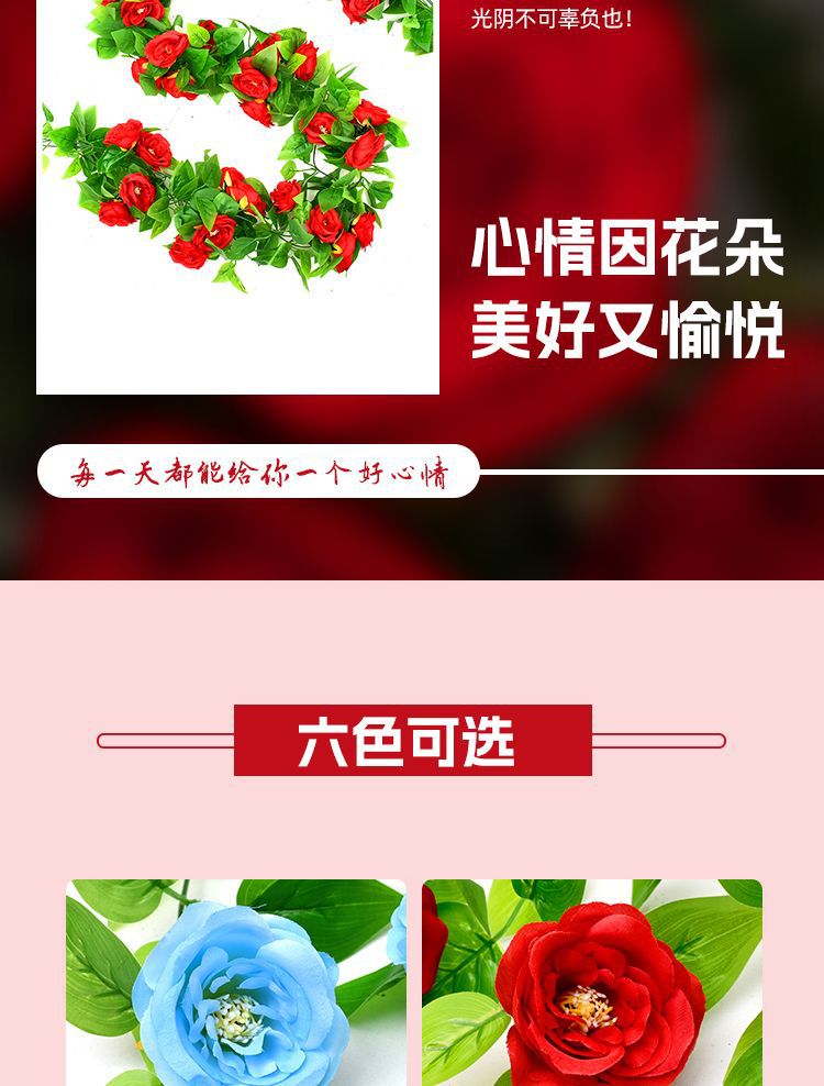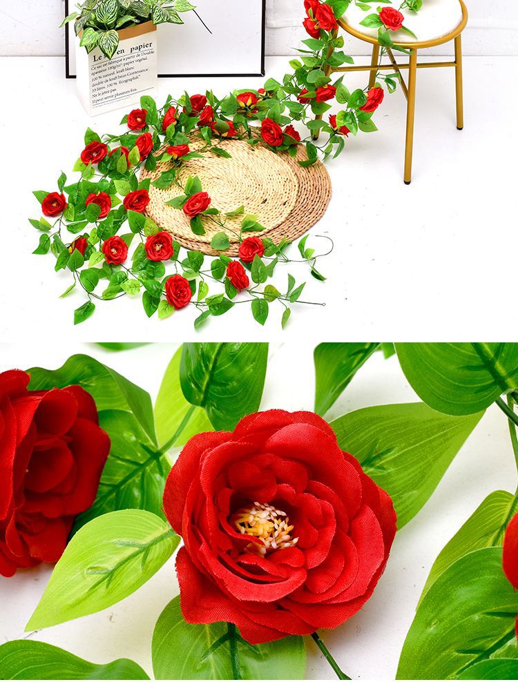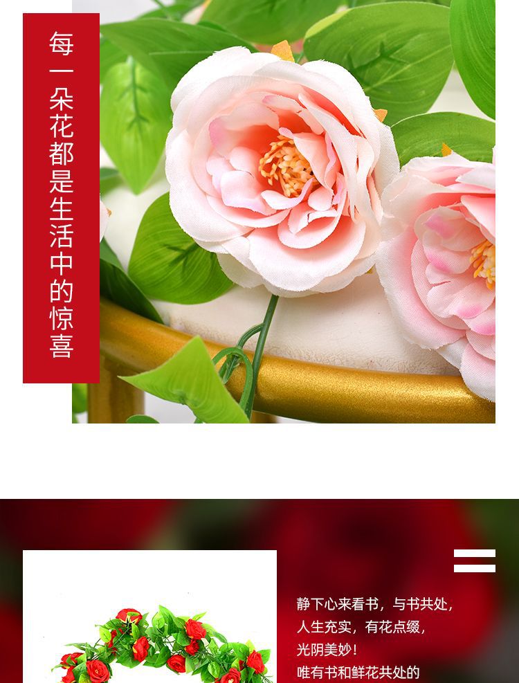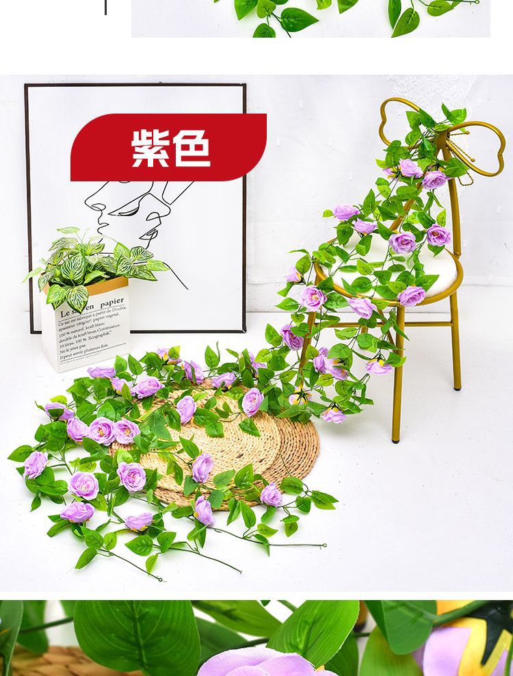 仿真玫瑰花藤条吊顶装饰假花藤蔓遮挡暖气空调水管道缠绕塑料植物