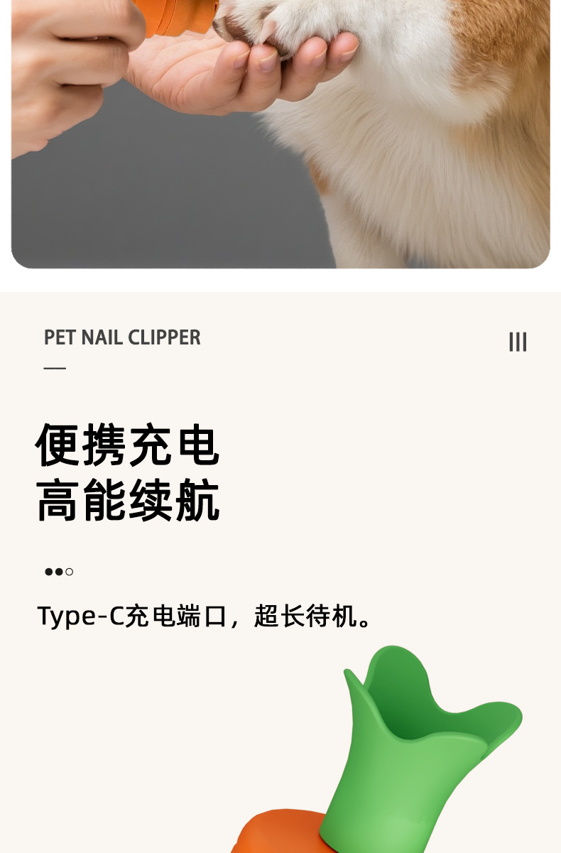 新款胡萝卜宠物磨甲器电动便携磨甲器全自动宠物清洁用品狗狗猫咪