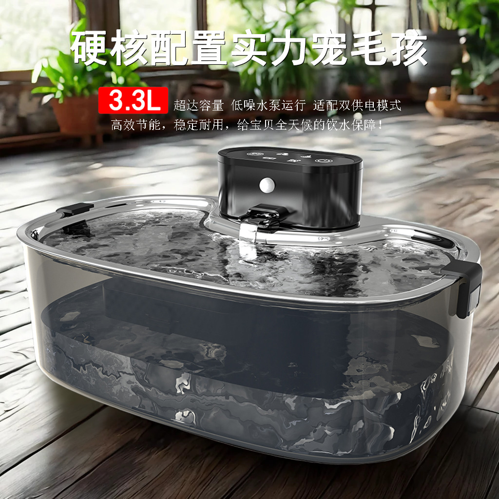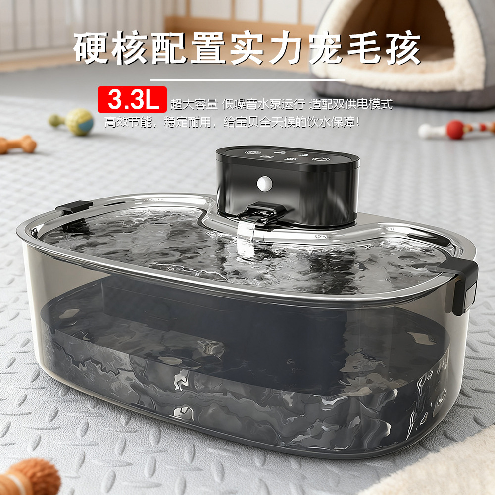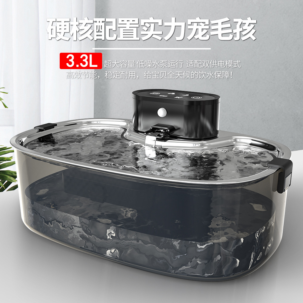 3.3L大容量宠物智能饮水机食品级304不锈钢超静音喂水机猫狗通用