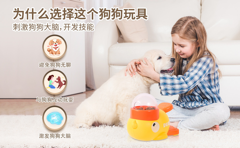 跨境小黄鸭宠物漏食器按压旋转出食狗自嗨解闷不插电训神器