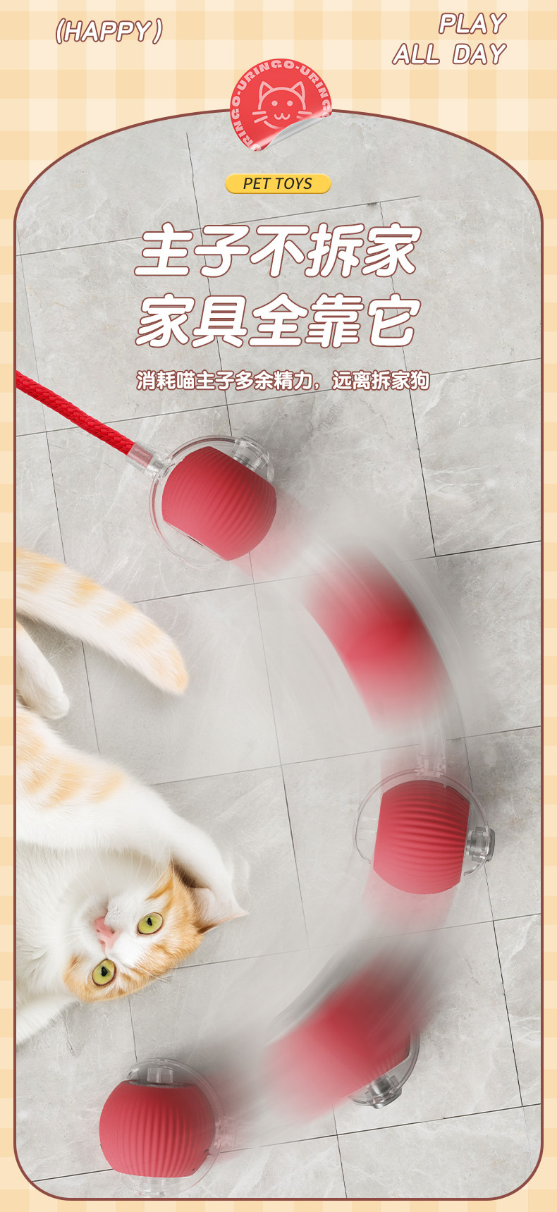 猫玩具自嗨解闷自动逗猫球滚滚球带绳子电动逗狗宠物用品玩具