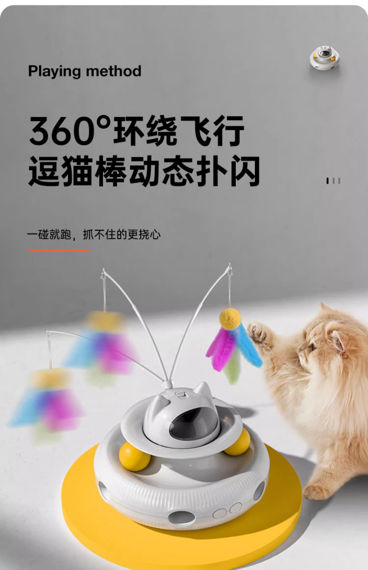 跨境爆款智能逗猫玩具宠物自嗨解闷神器批发感应猫转盘电动逗猫棒