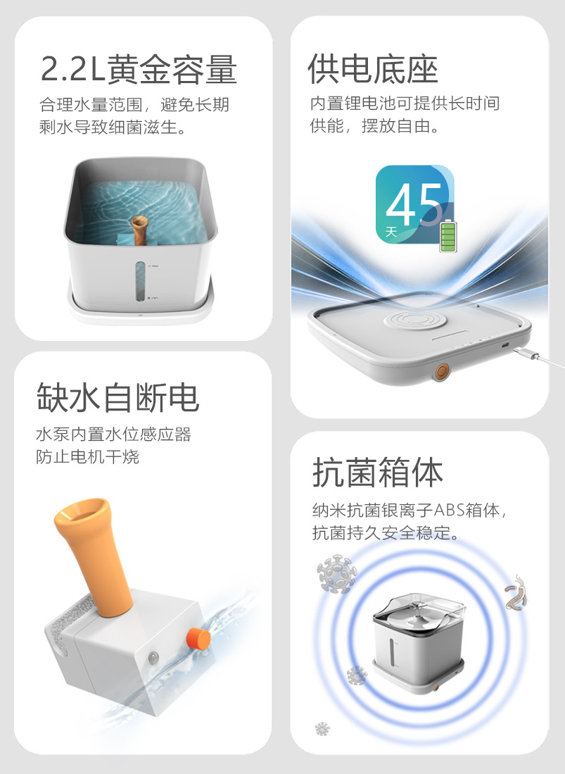 跨境专供宠物饮水机静音智能猫咪饮水机无线续航食品材料黄金大容