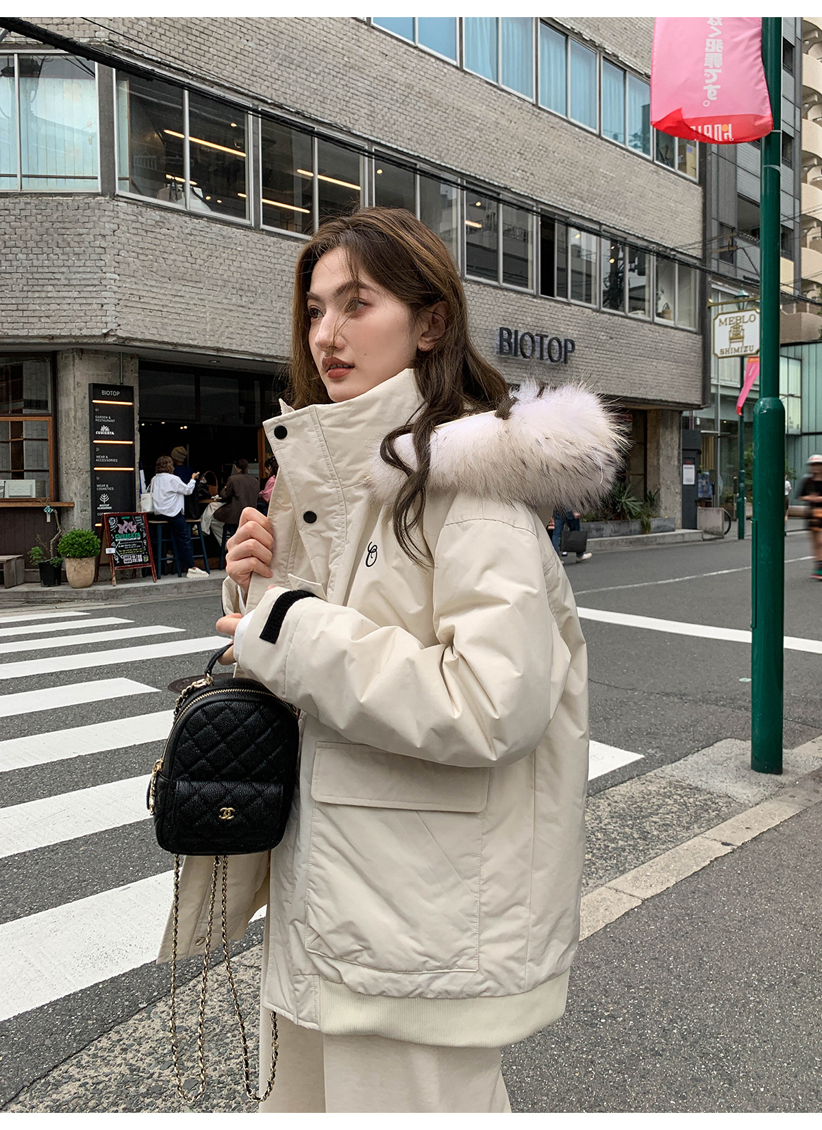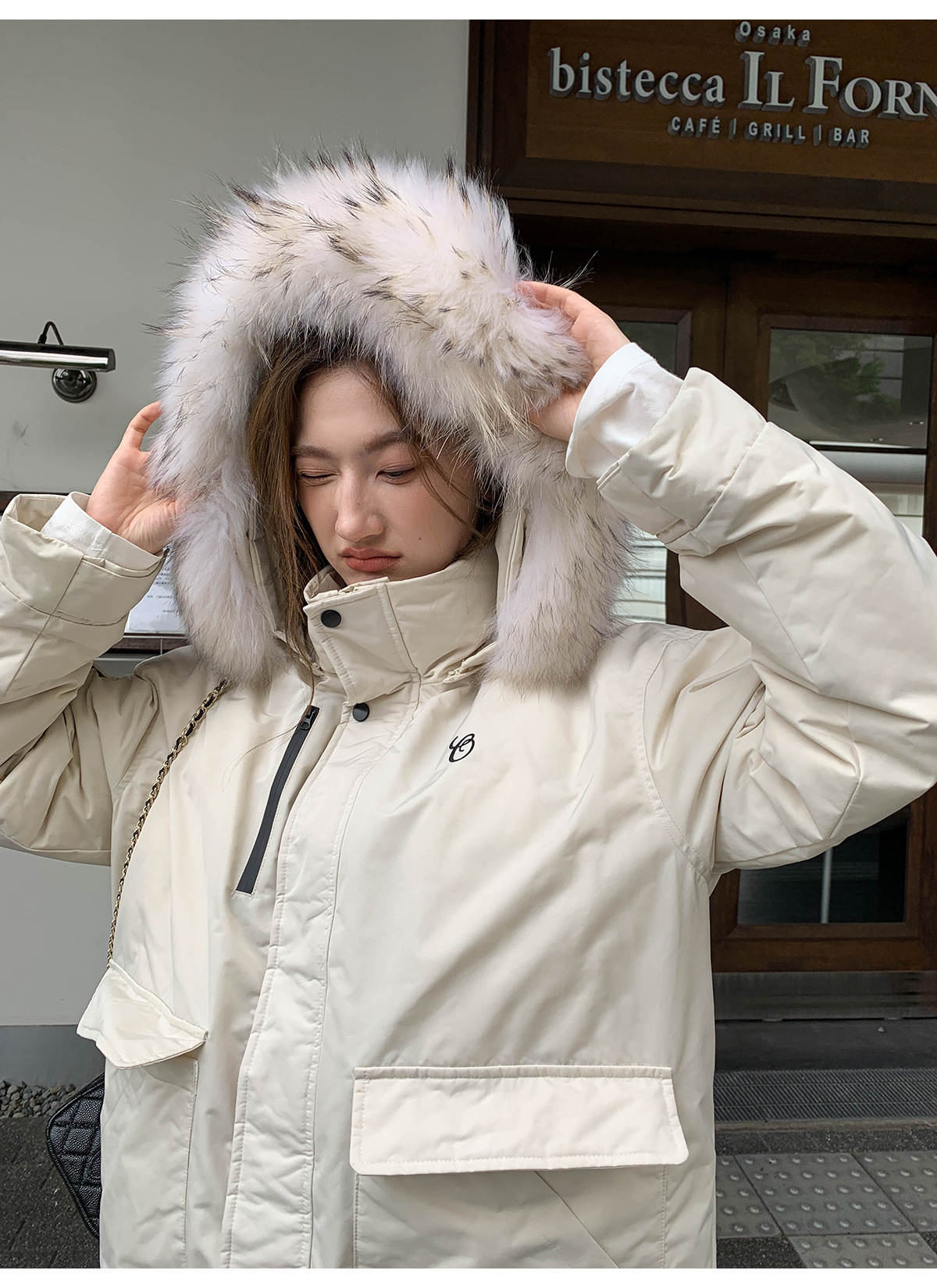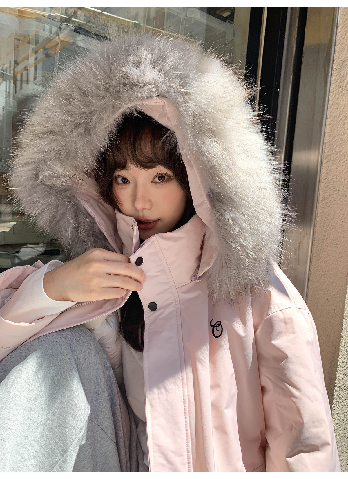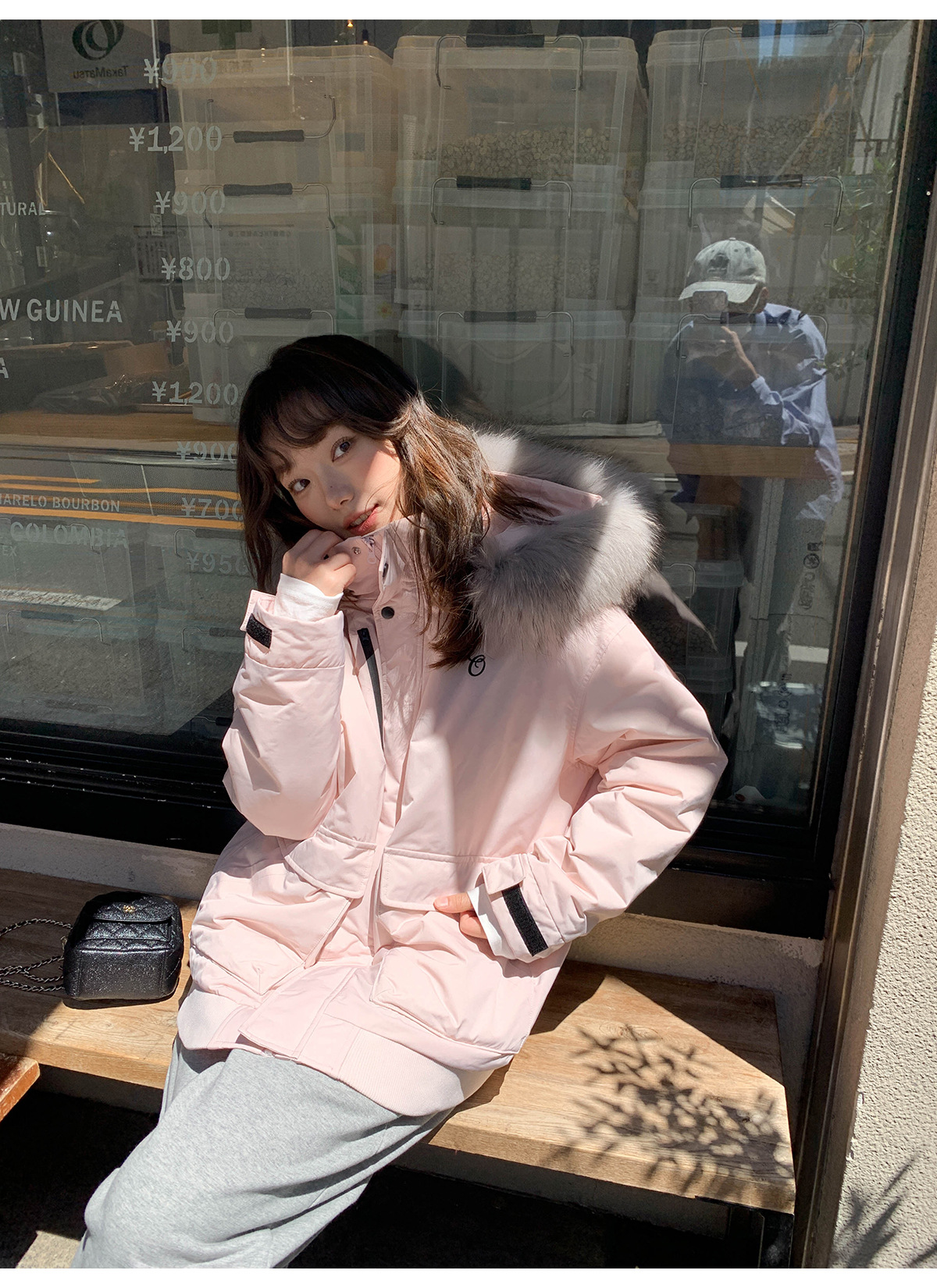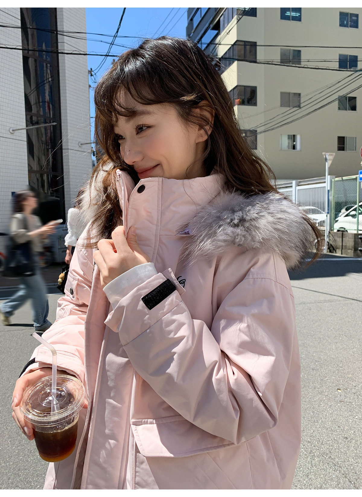 户外风三防毛领派克羽绒服女秋冬新款宽松90白鸭绒外套
