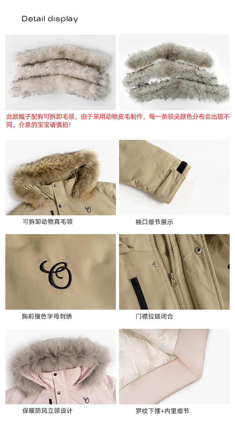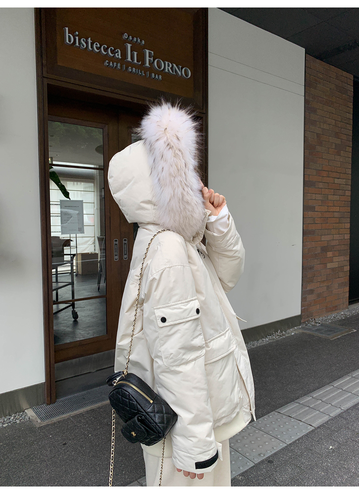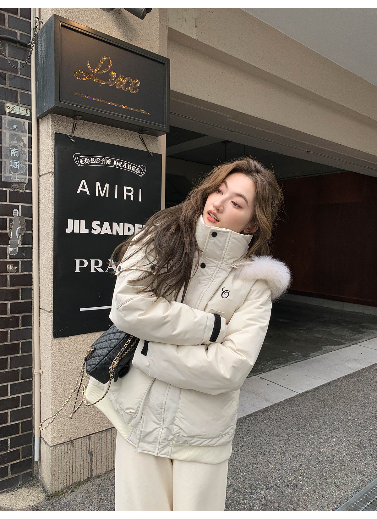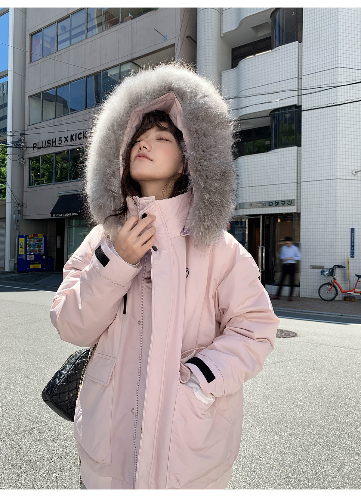 户外风三防毛领派克羽绒服女秋冬新款宽松90白鸭绒外套