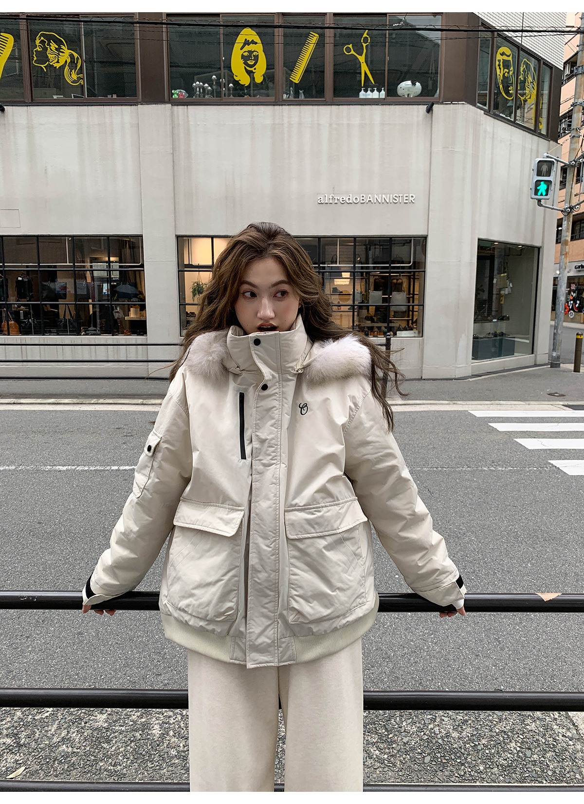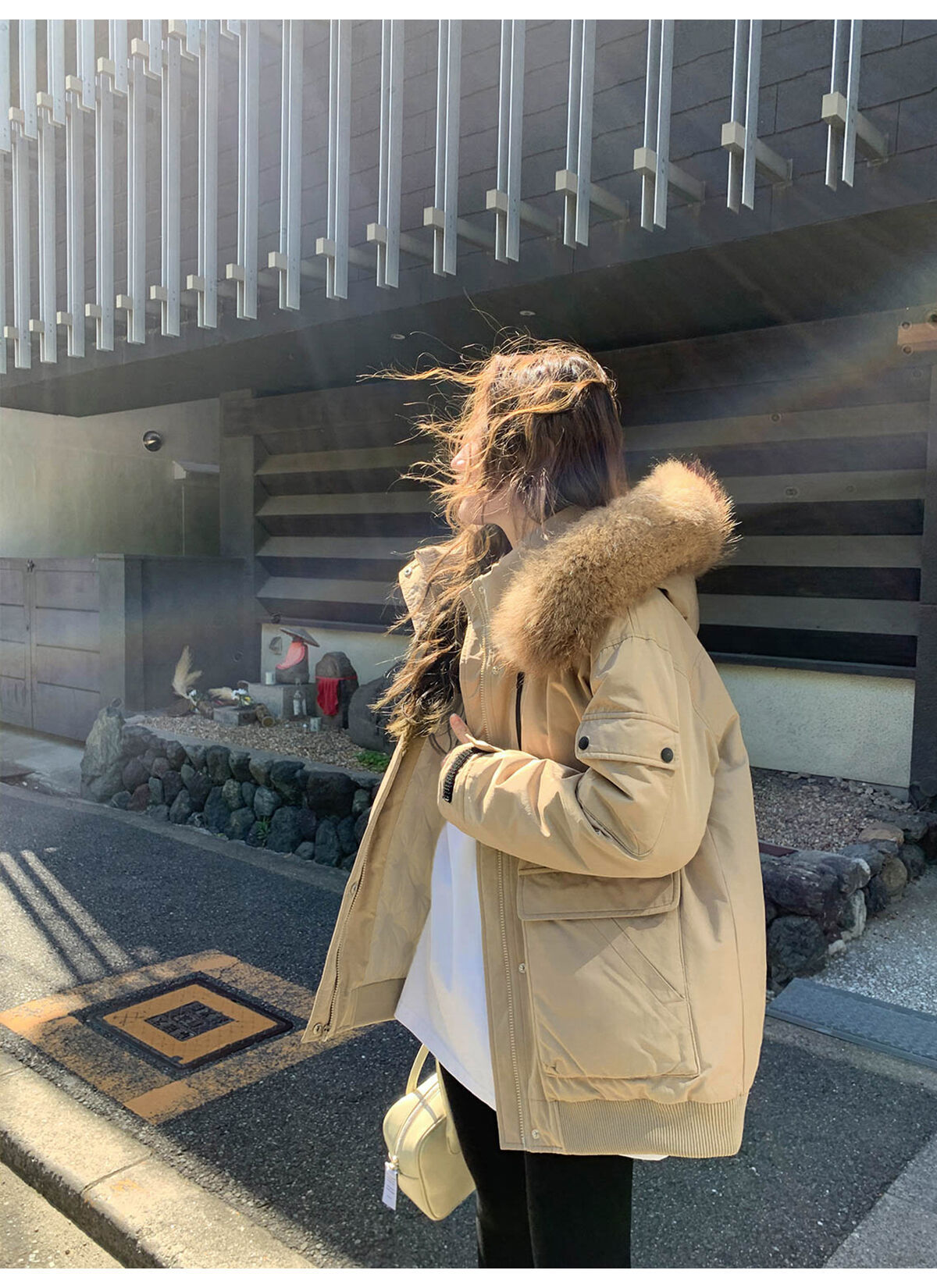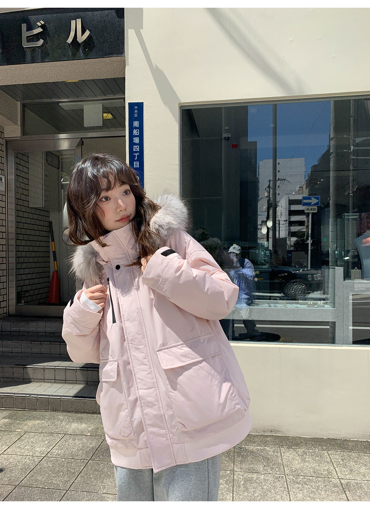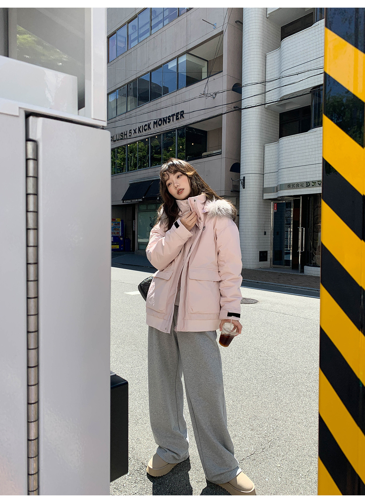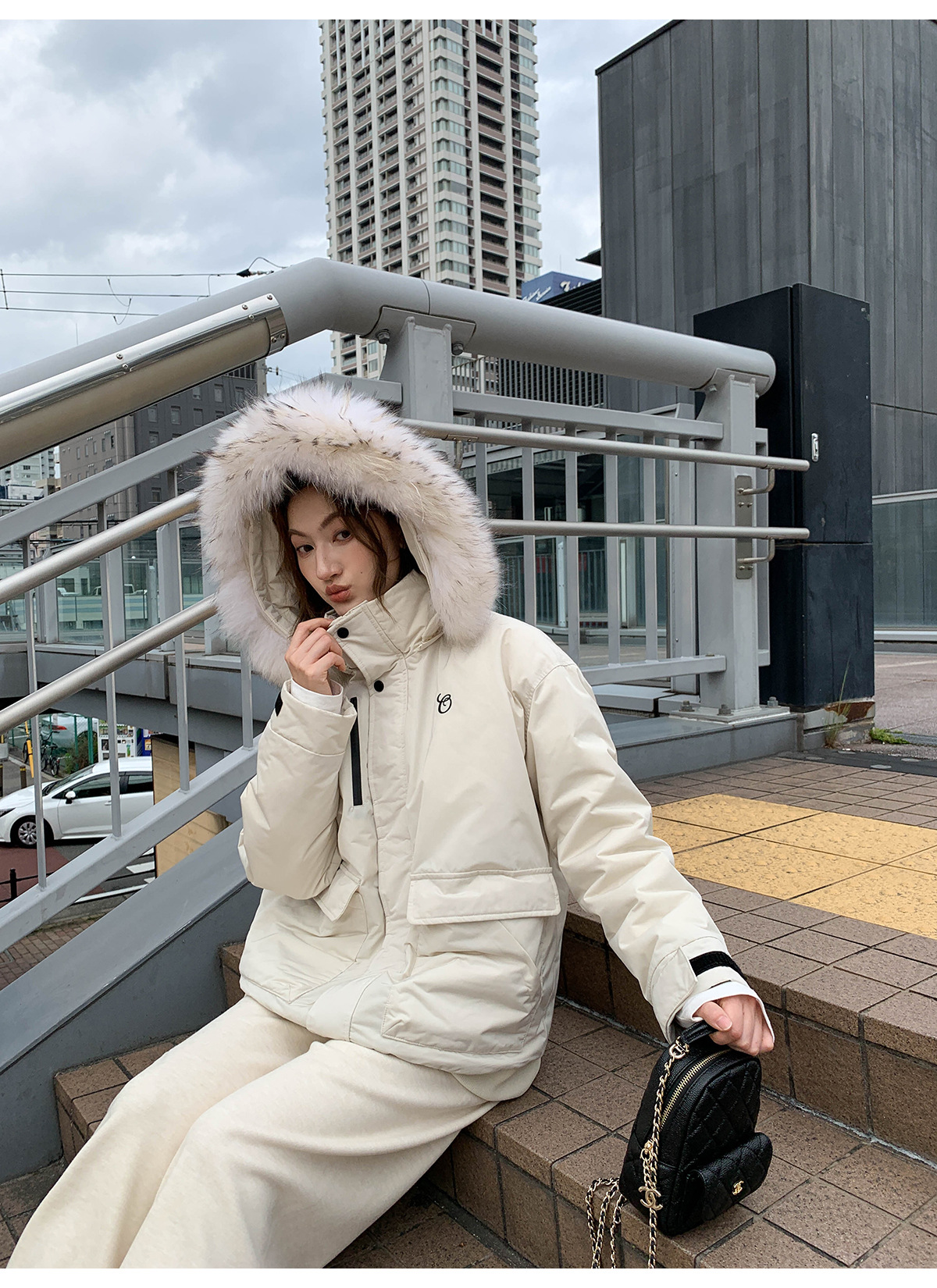 户外风三防毛领派克羽绒服女秋冬新款宽松90白鸭绒外套