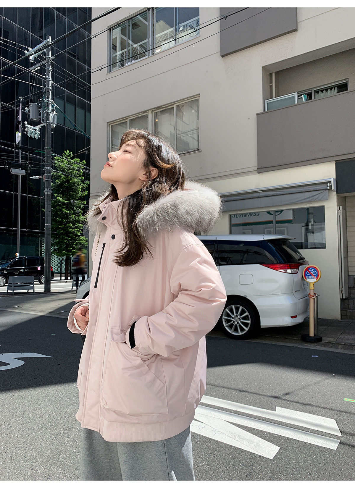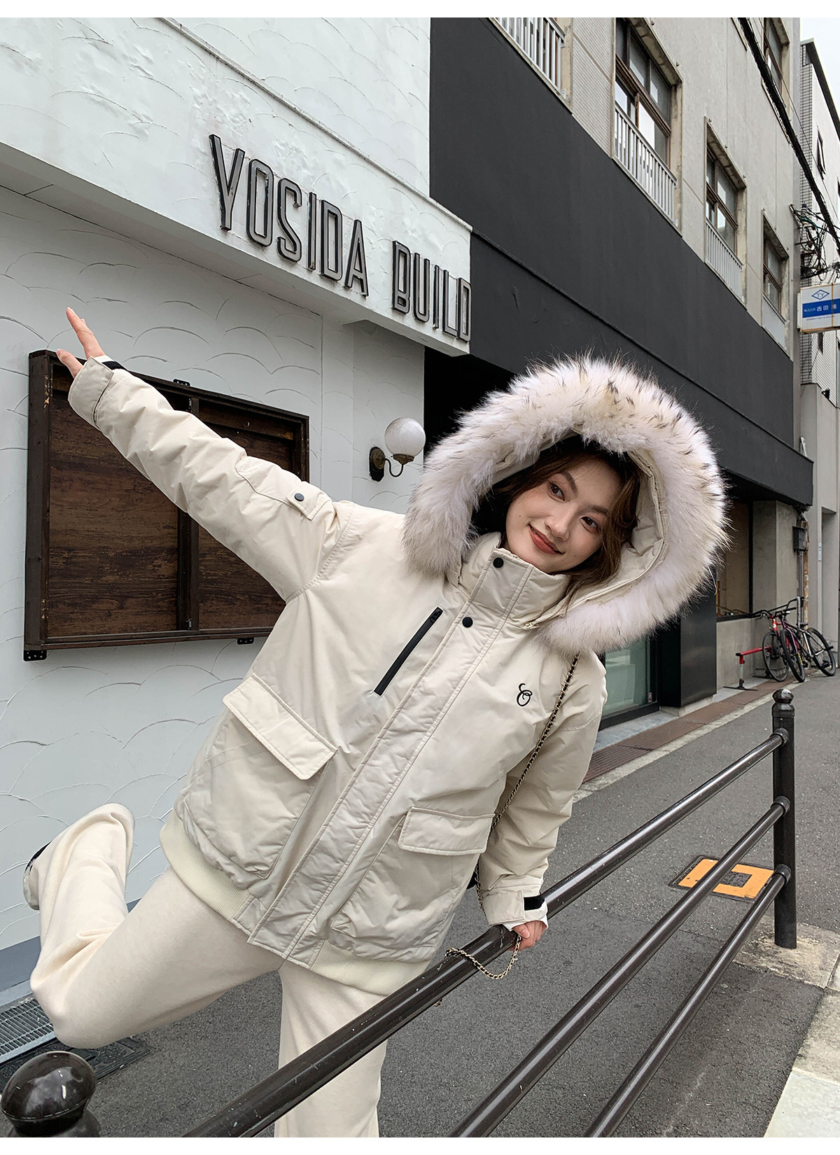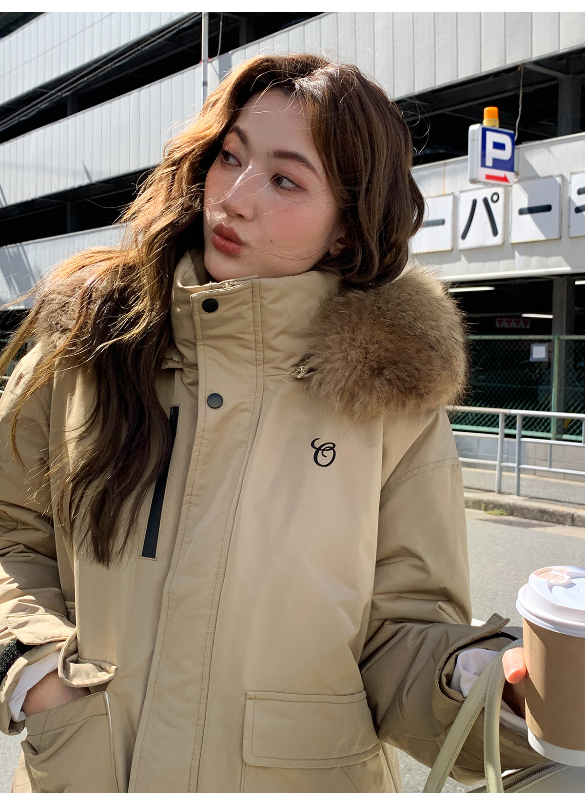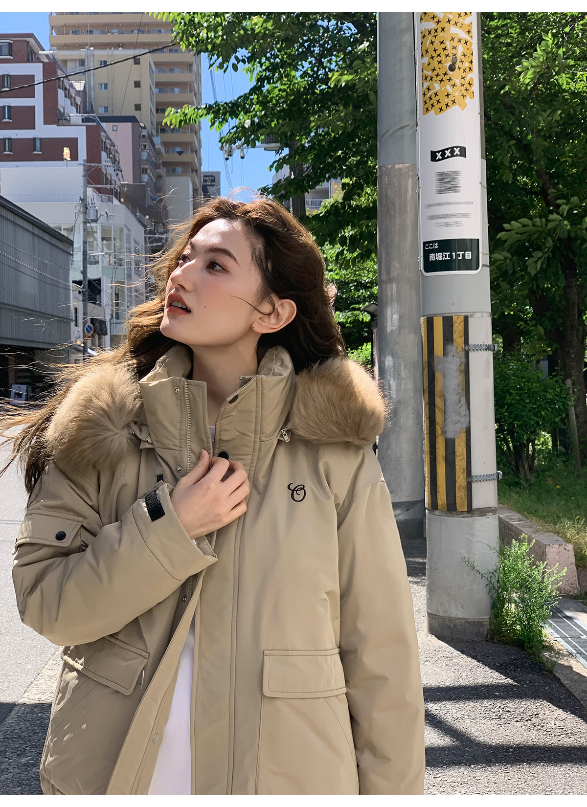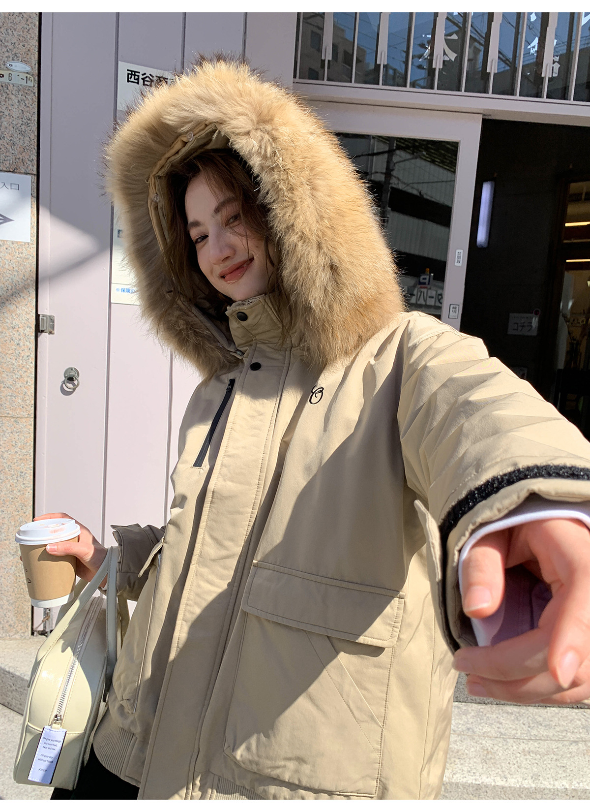 户外风三防毛领派克羽绒服女秋冬新款宽松90白鸭绒外套