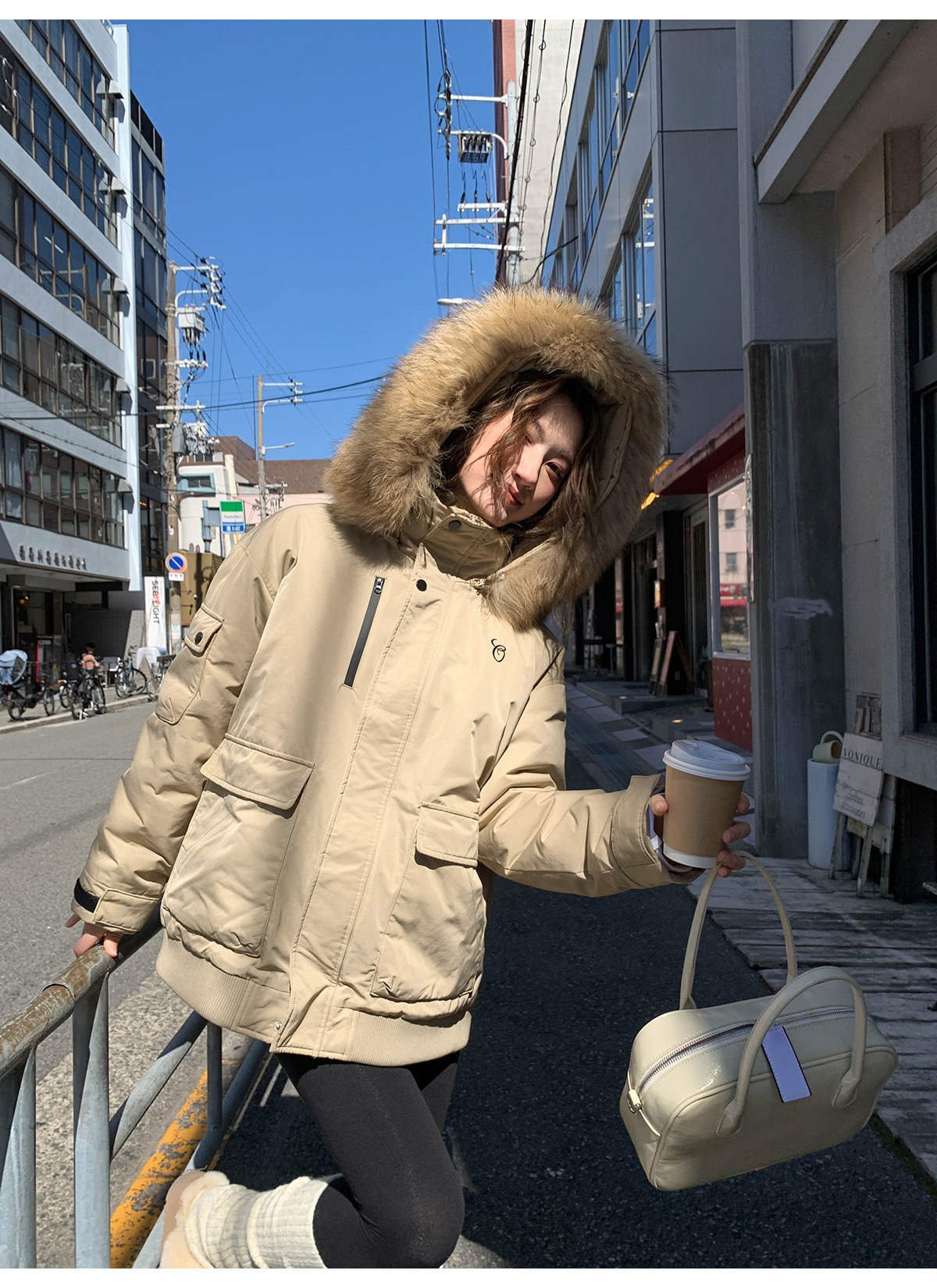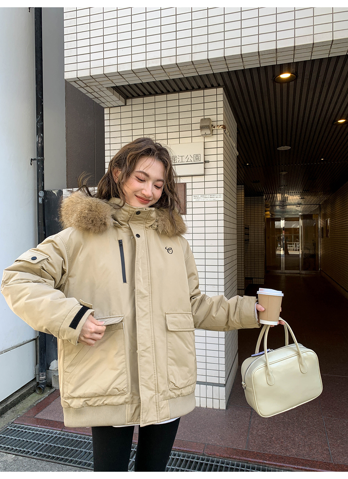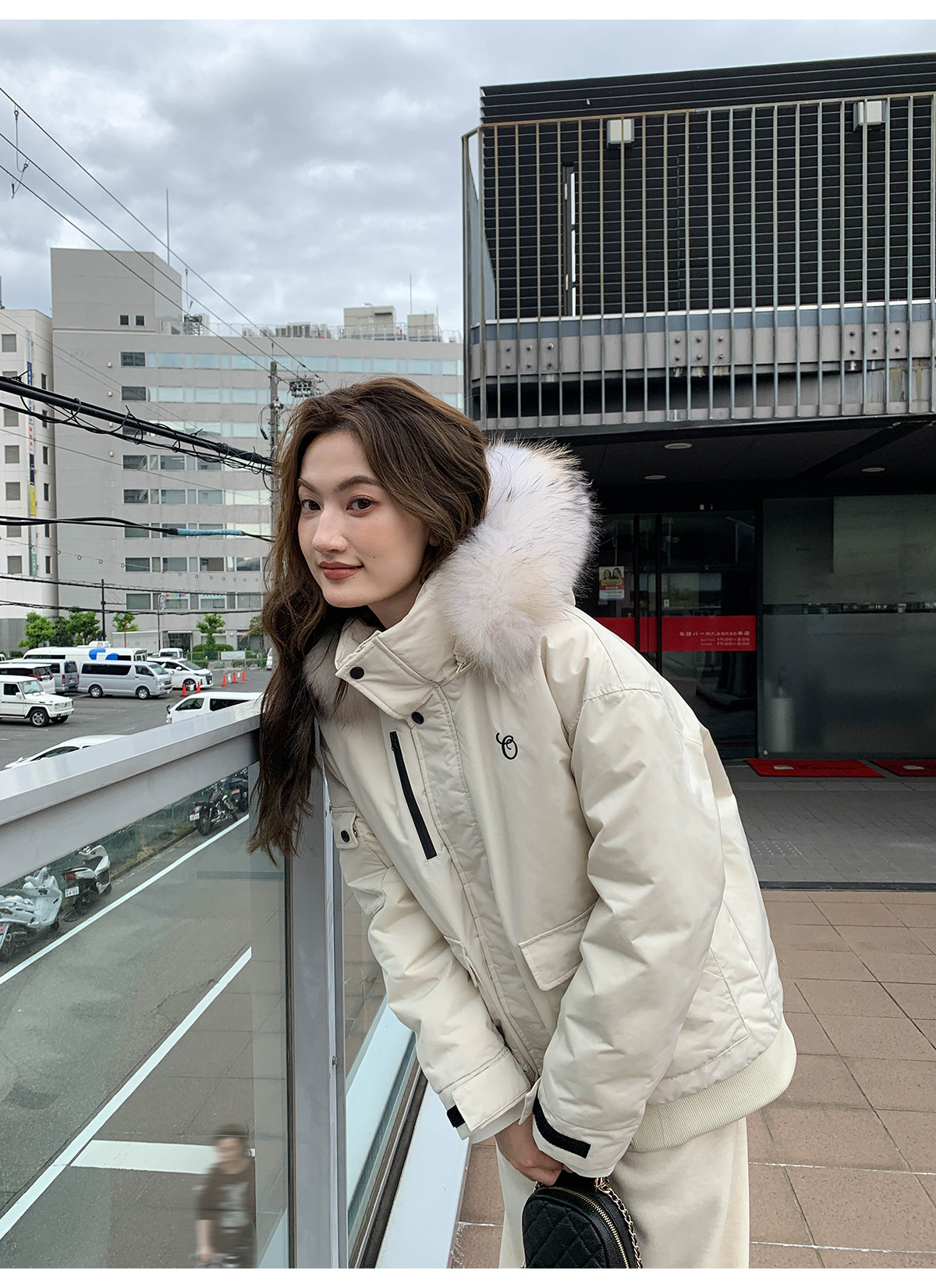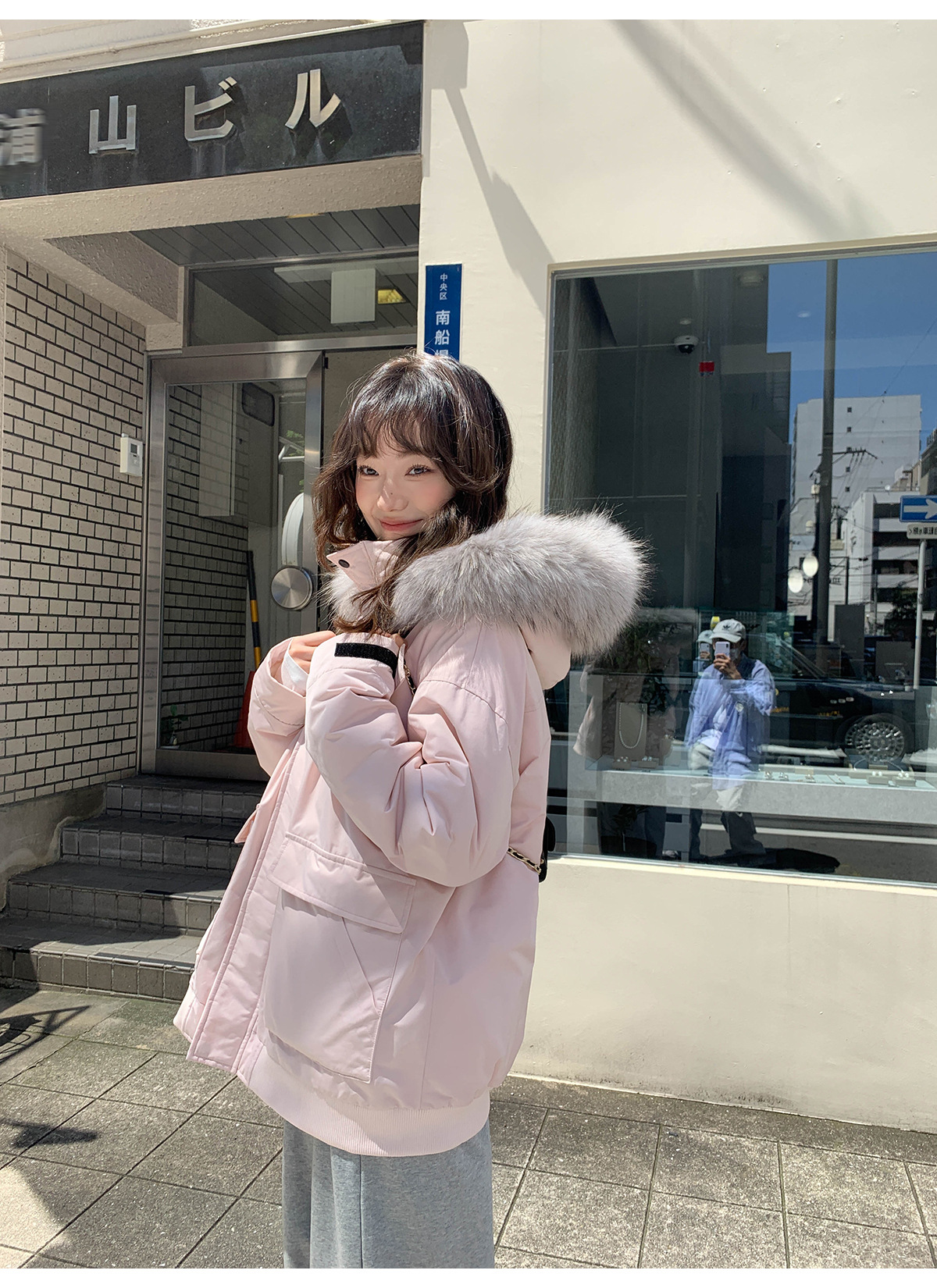 户外风三防毛领派克羽绒服女秋冬新款宽松90白鸭绒外套
