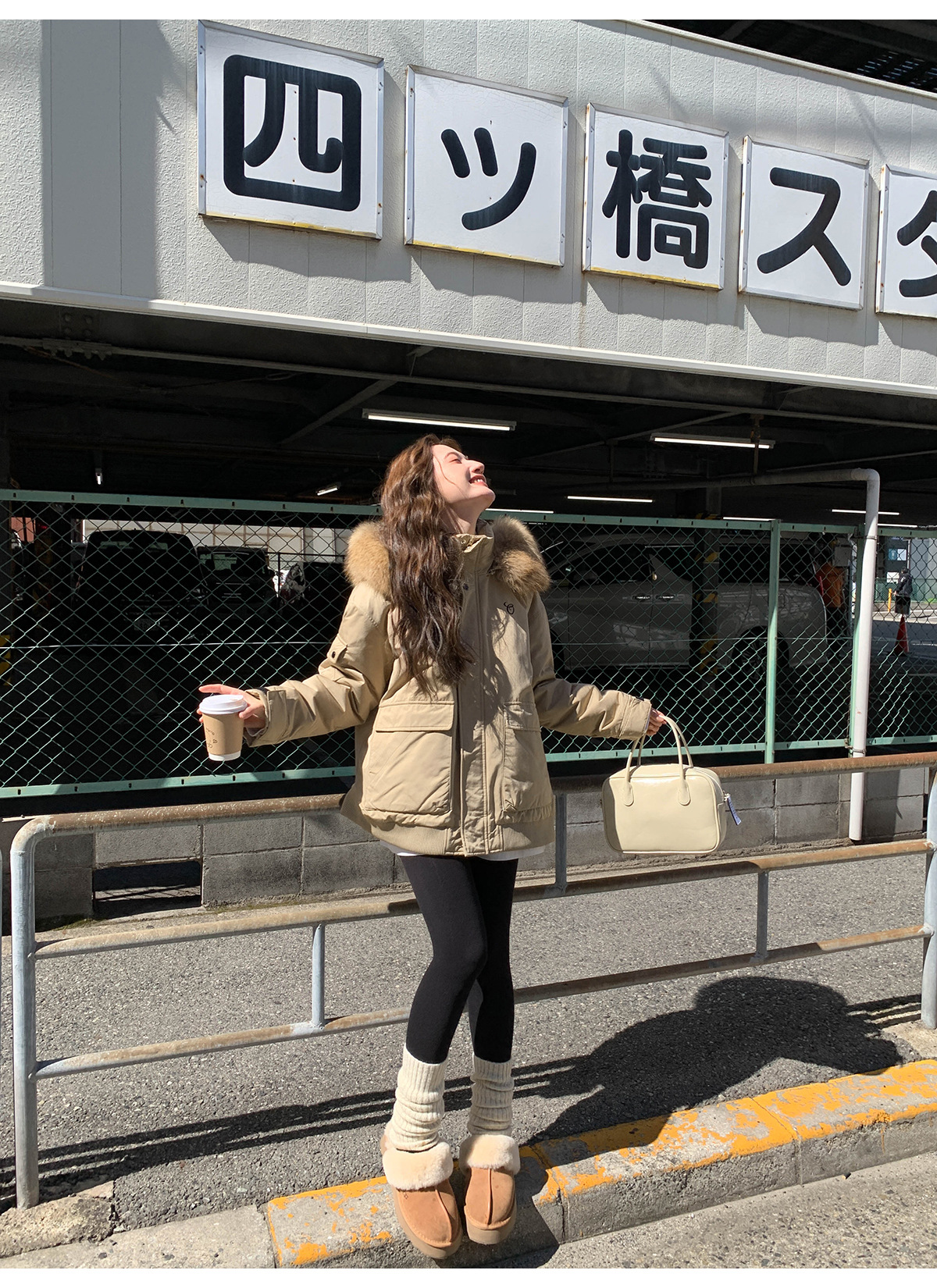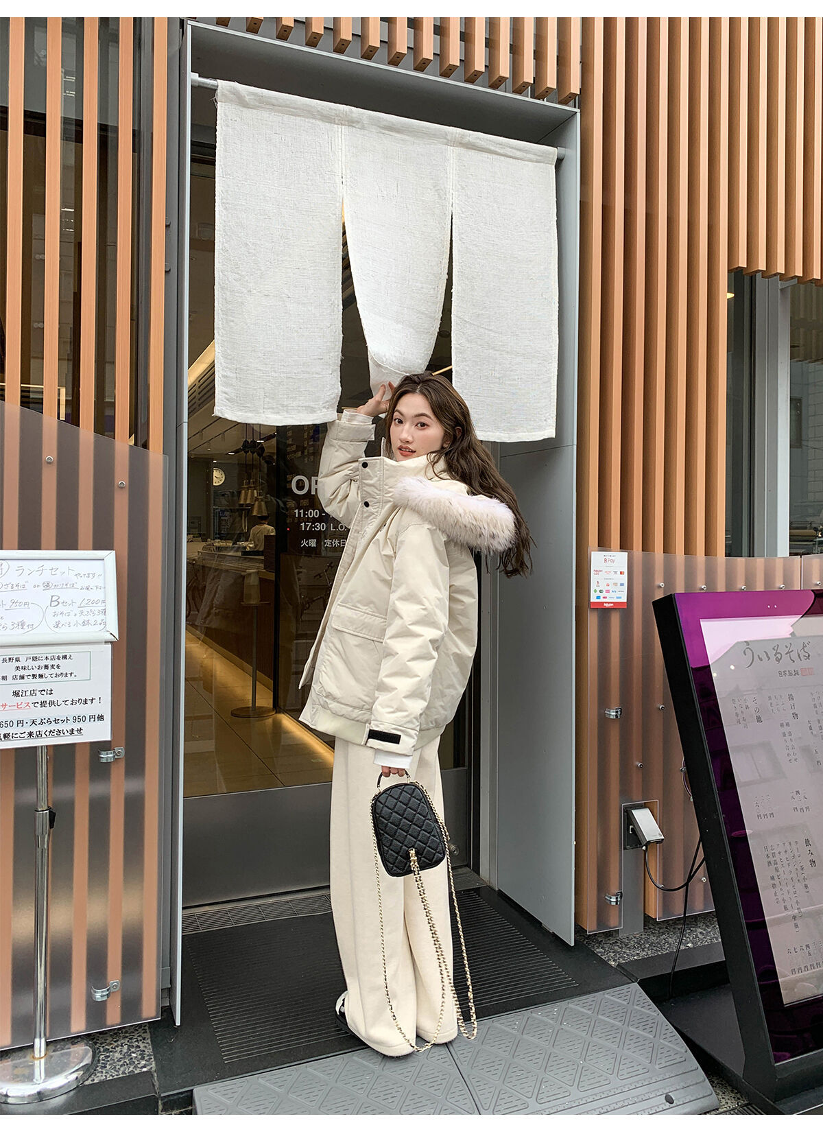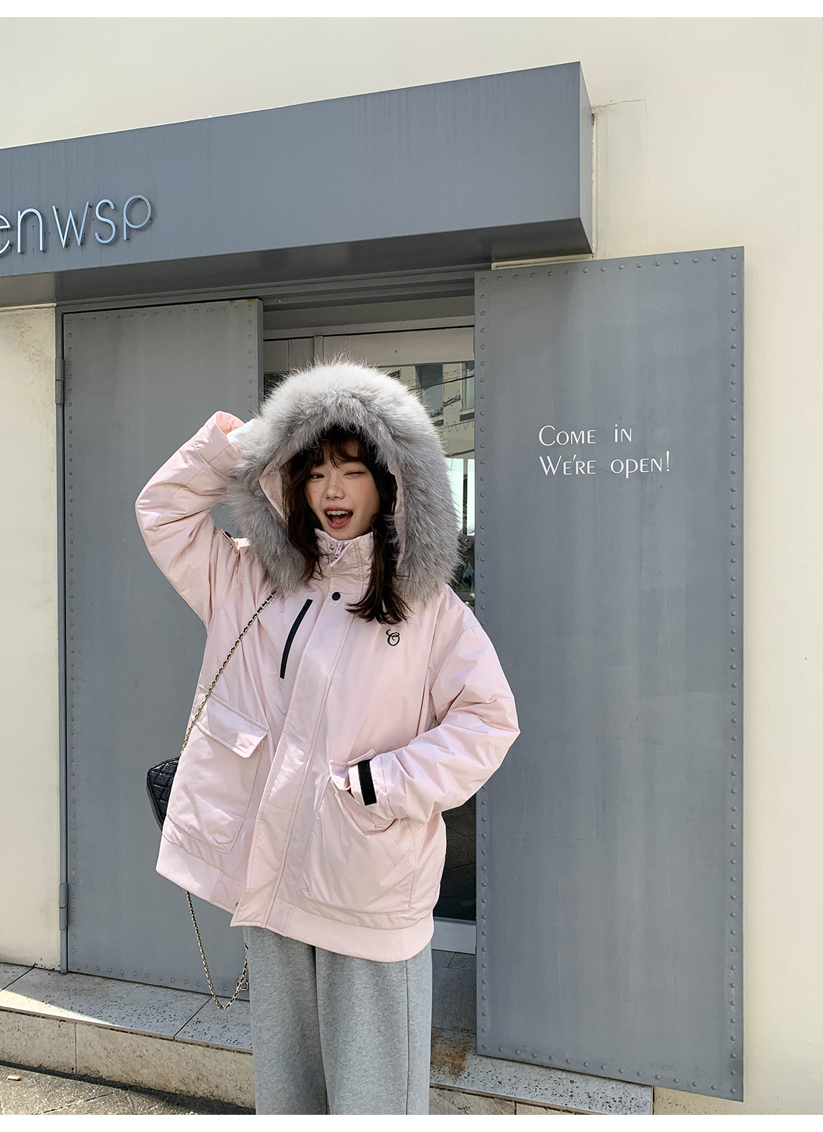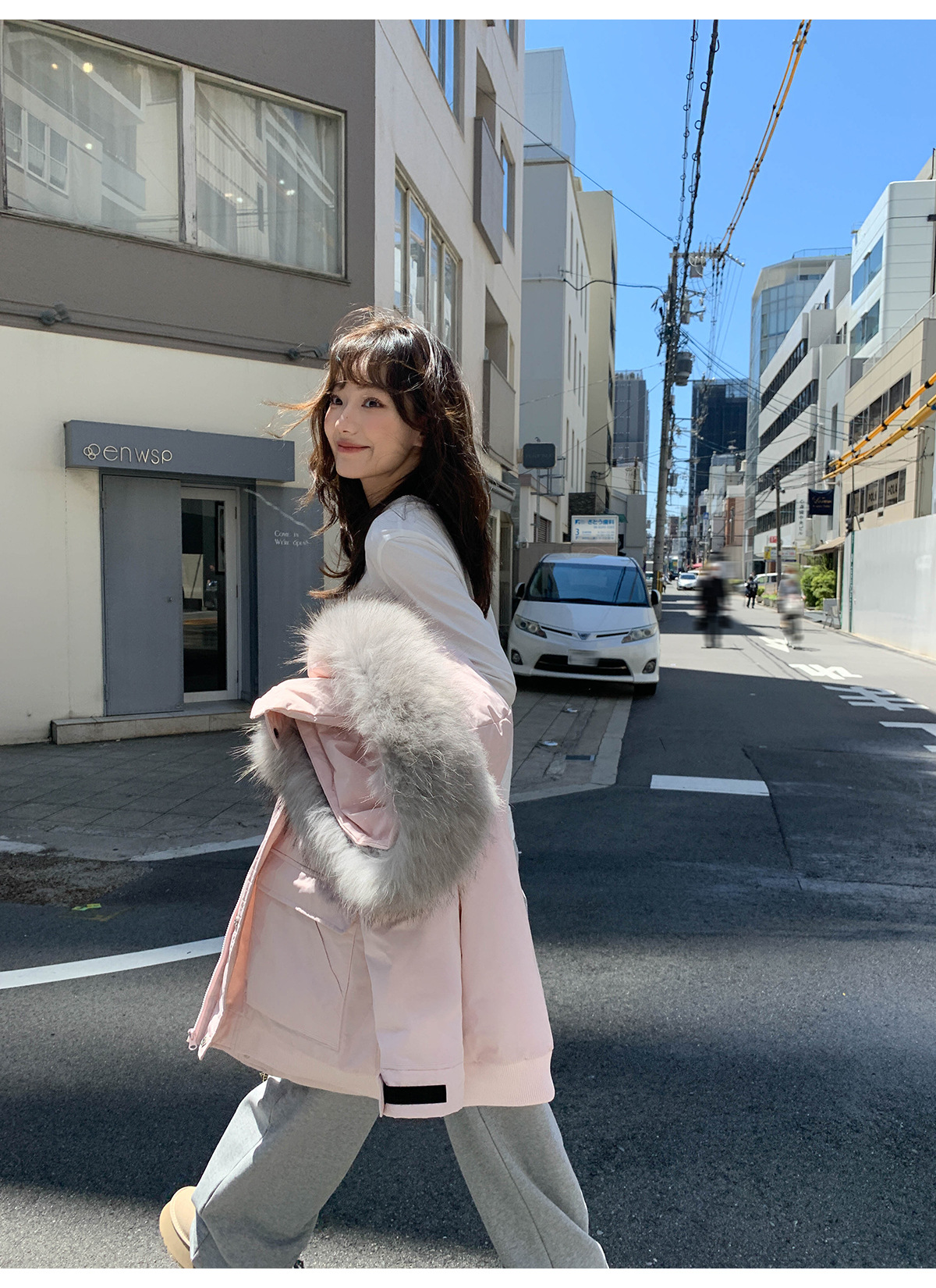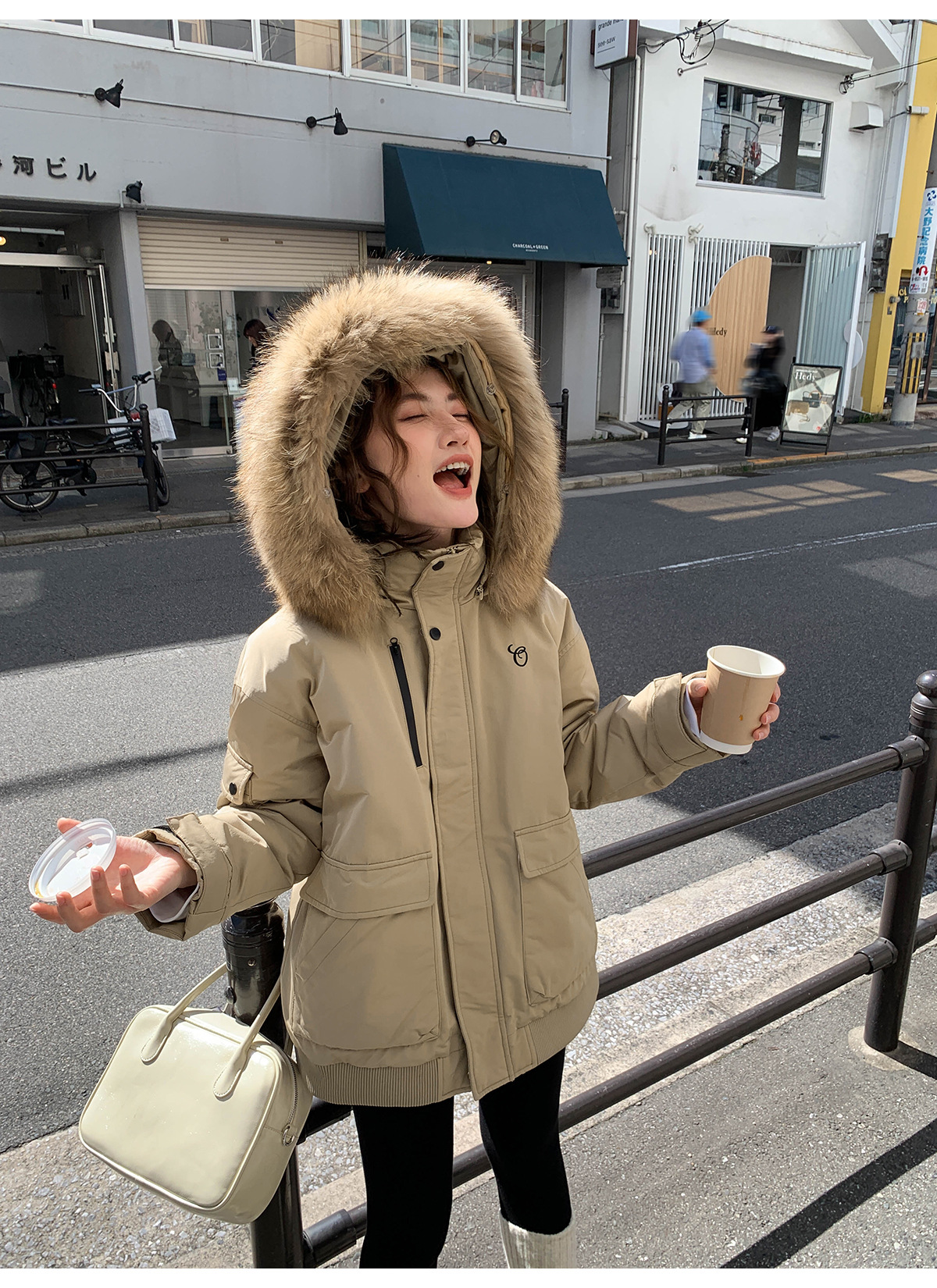 户外风三防毛领派克羽绒服女秋冬新款宽松90白鸭绒外套