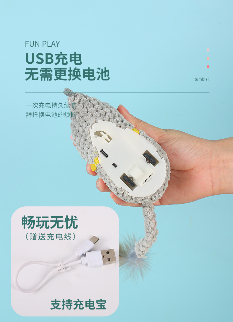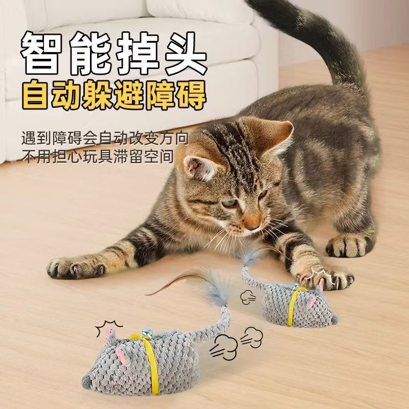猫玩具自嗨解闷神器电动智能小老鼠猫咪发声假耗子逗猫棒宠物用品