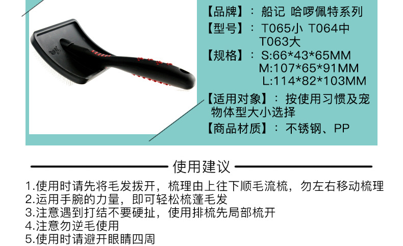 船记HELLO PET梳毛不痛软针梳泰迪金毛猫咪狗狗梳子狗毛刷子宠物