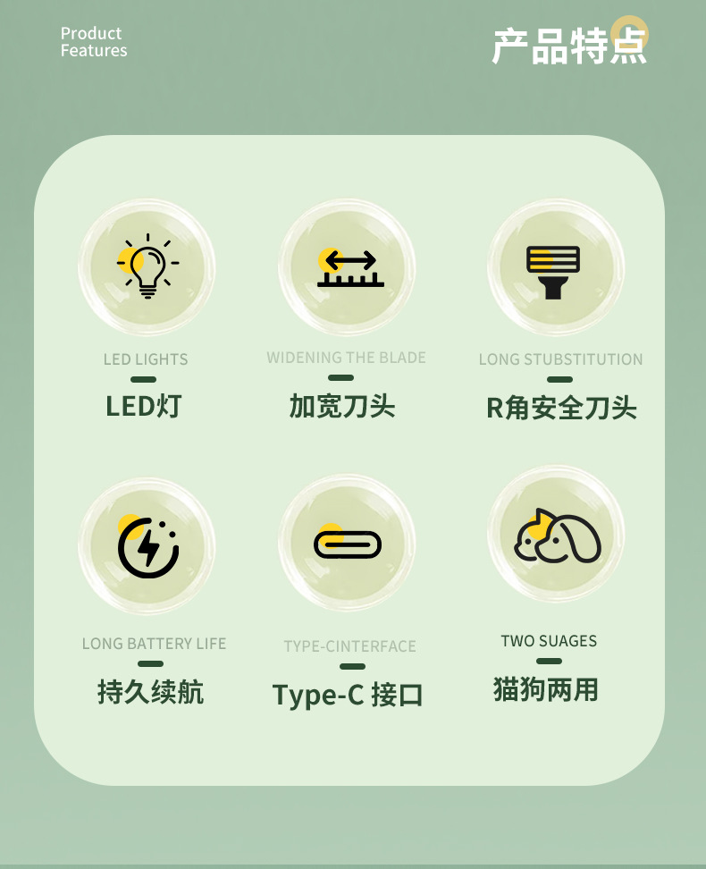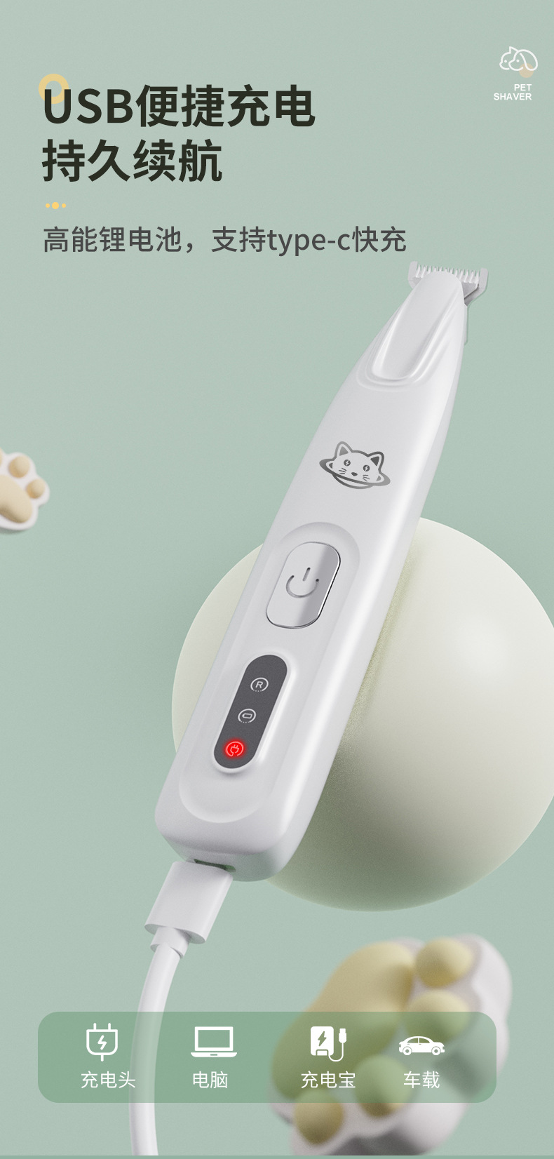猫咪狗狗宽头剃脚毛器可照明宠物理发修毛电动推子清洁工具剃毛器
