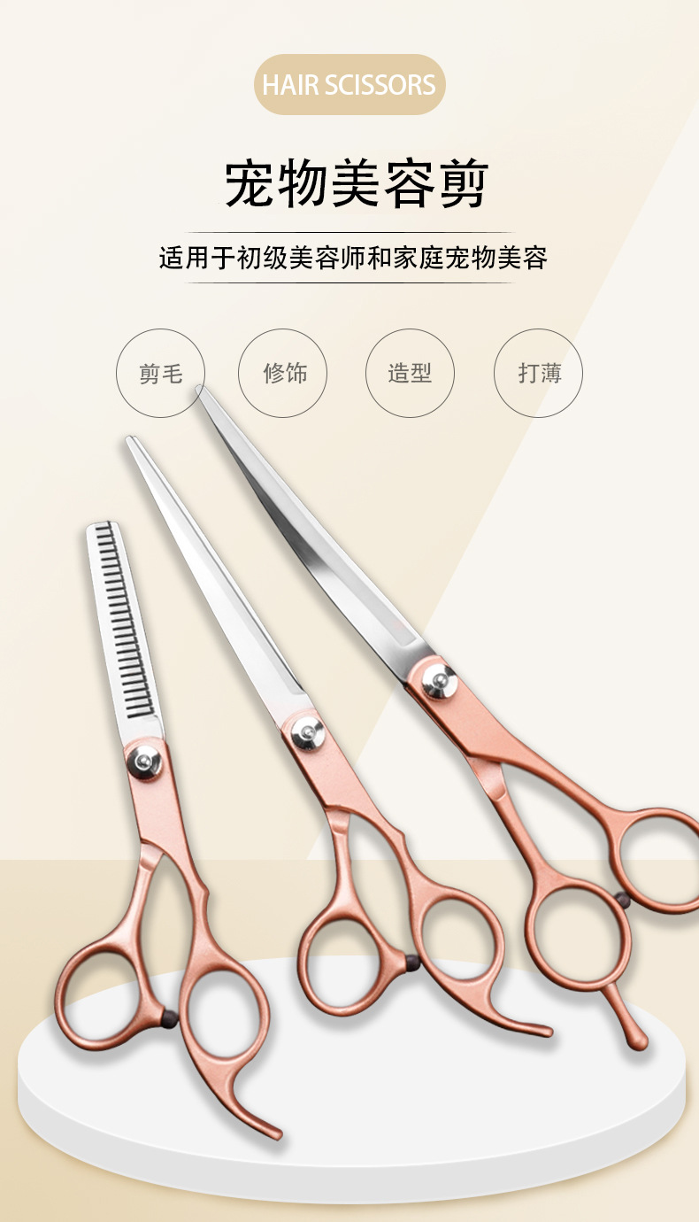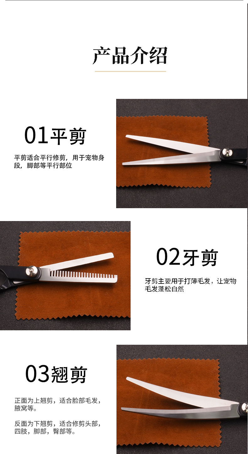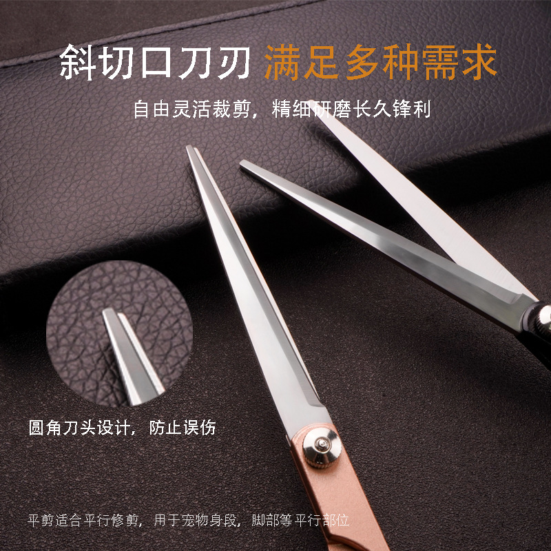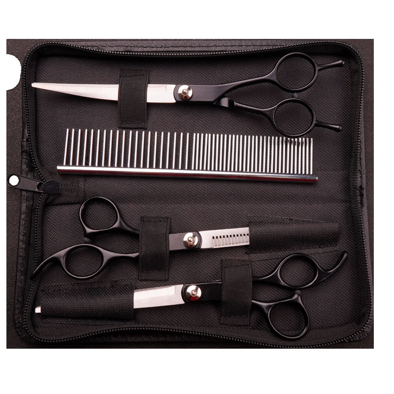 宠物美容剪刀狗狗剪毛剪刀套装7寸分体款黑色修毛剪弯剪宠物剪刀