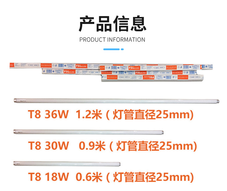 fsl佛山照明1.2米格珊灯直管t8荧光灯管40w36w30w18w日光灯灯管