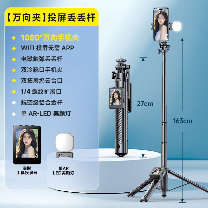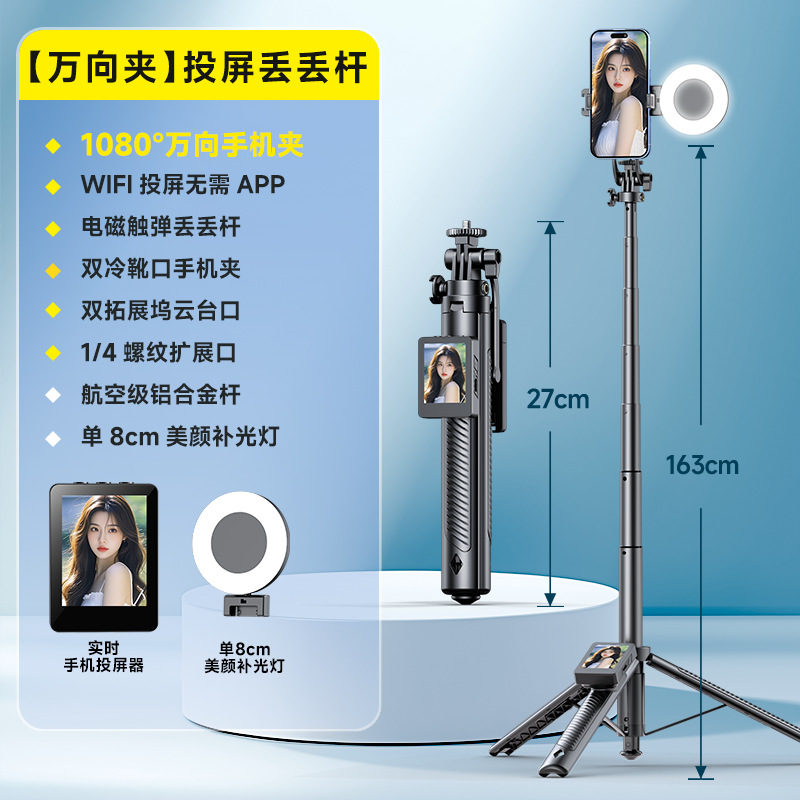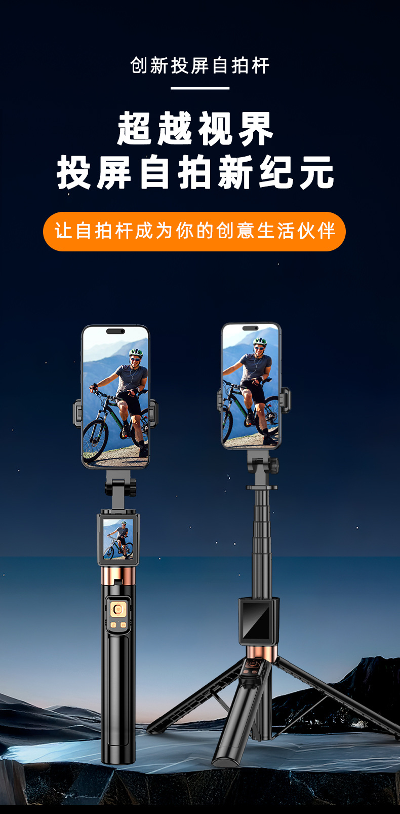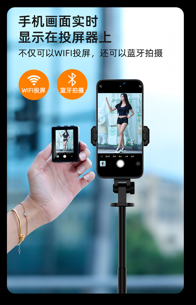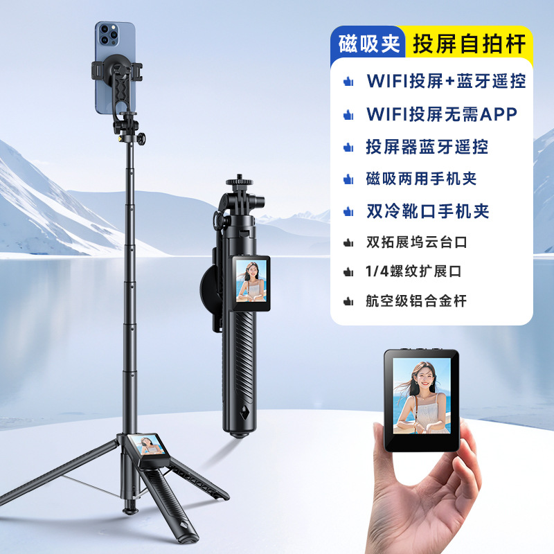 2025爆款投屏自拍杆WIFI投屏双蓝牙遥控合金伸缩杆拍摄角度灵活