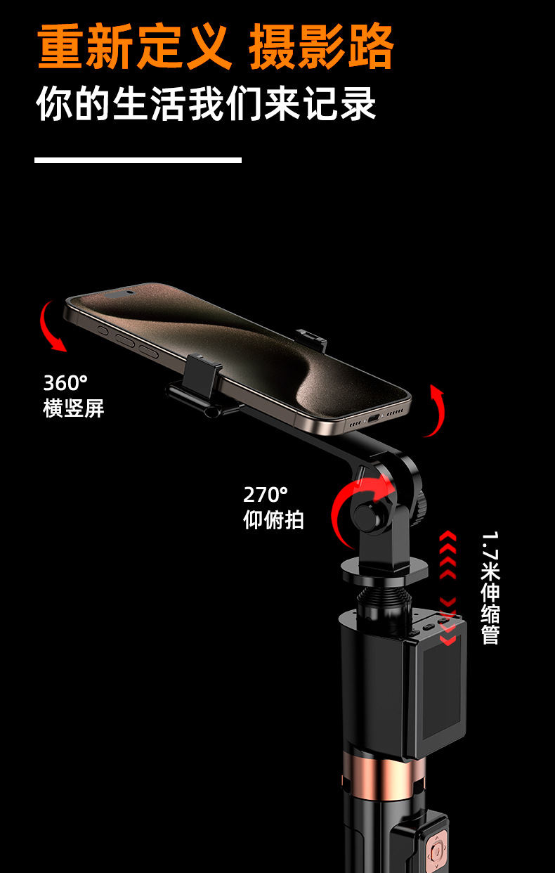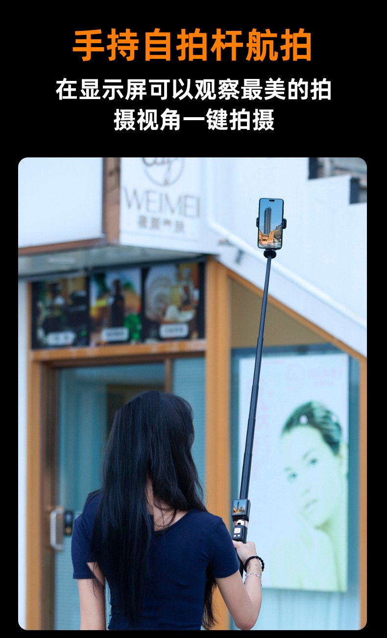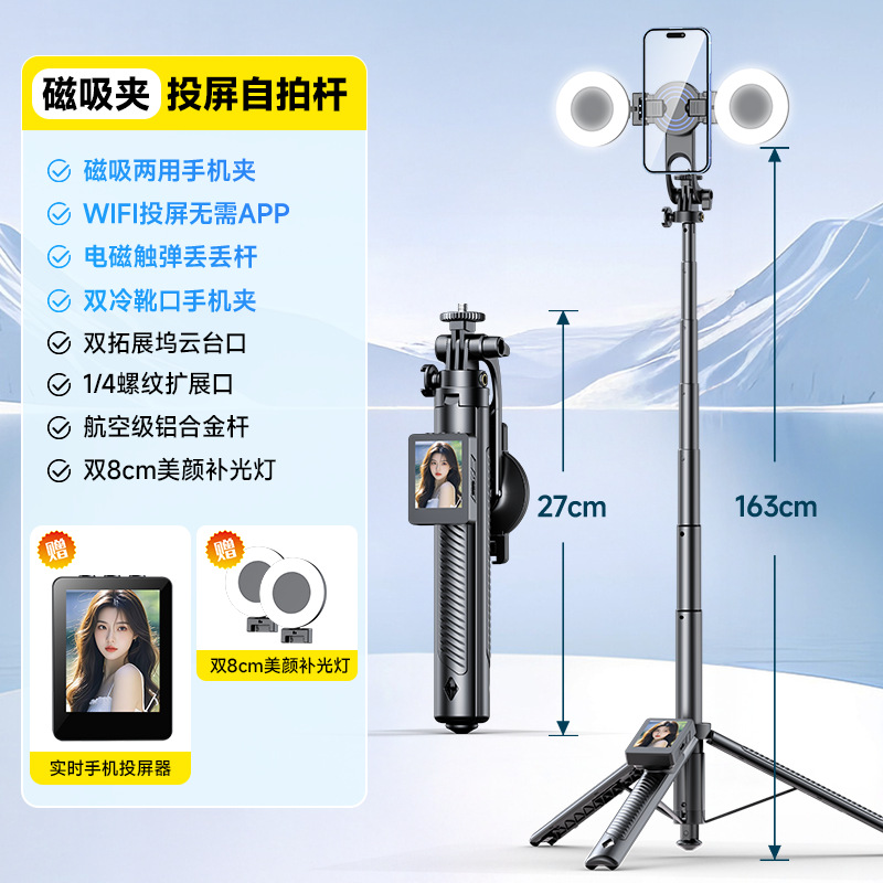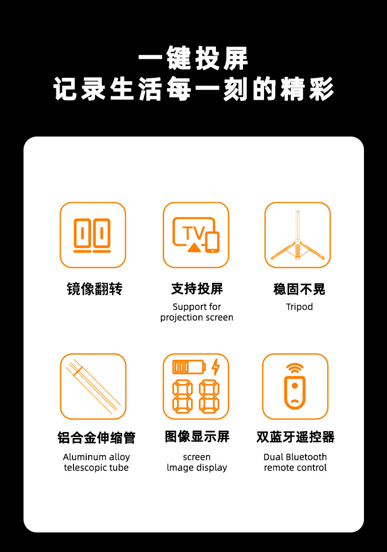 2025爆款投屏自拍杆WIFI投屏双蓝牙遥控合金伸缩杆拍摄角度灵活