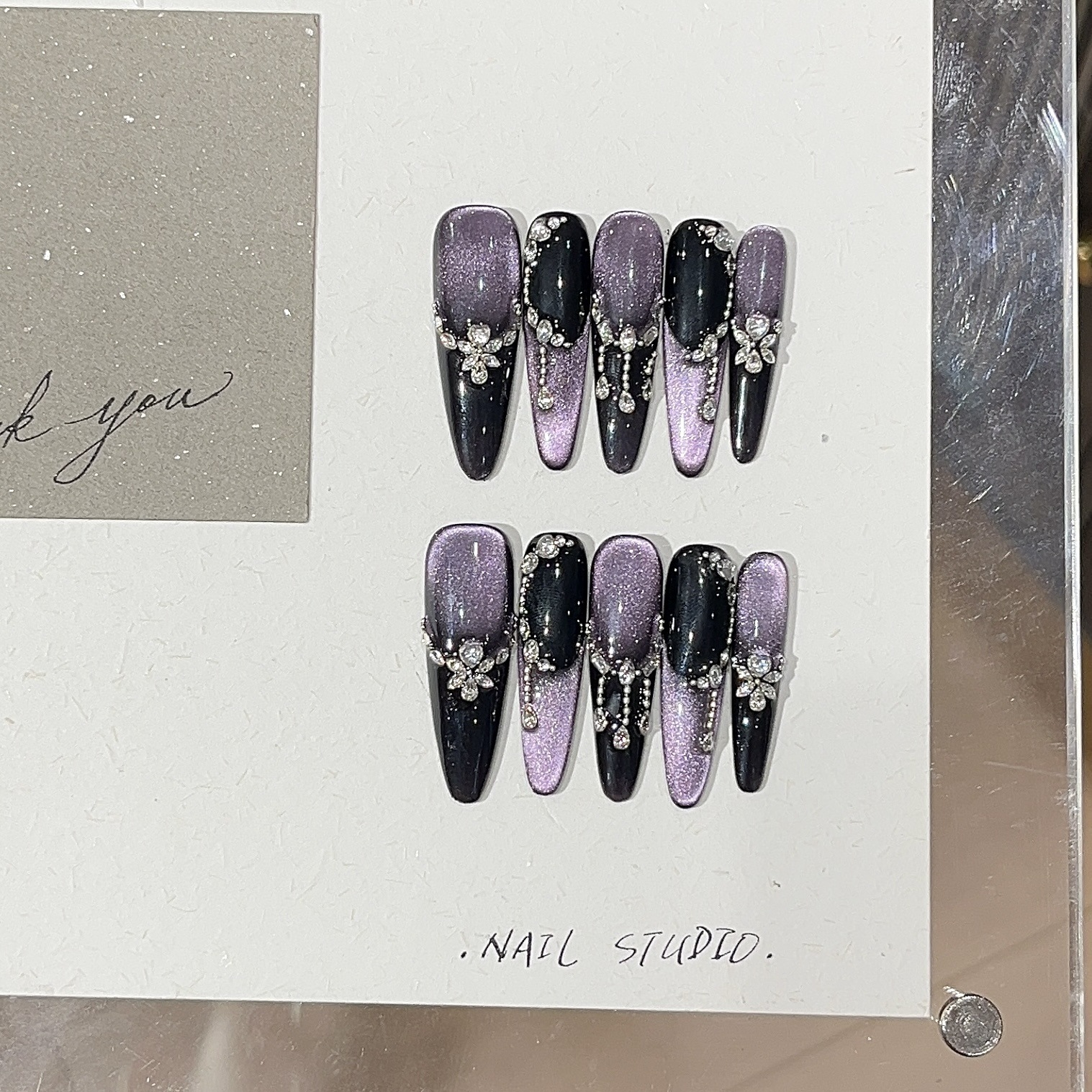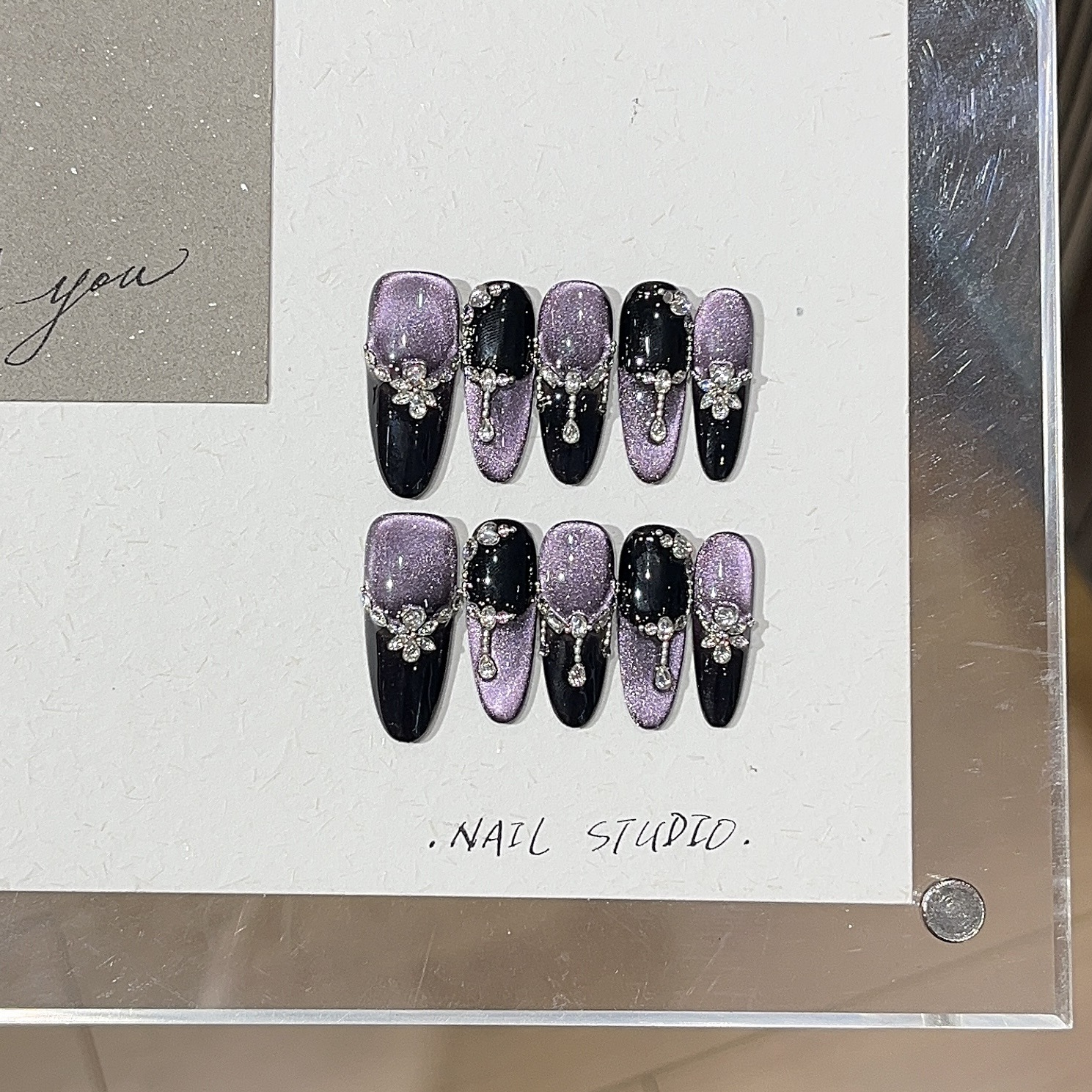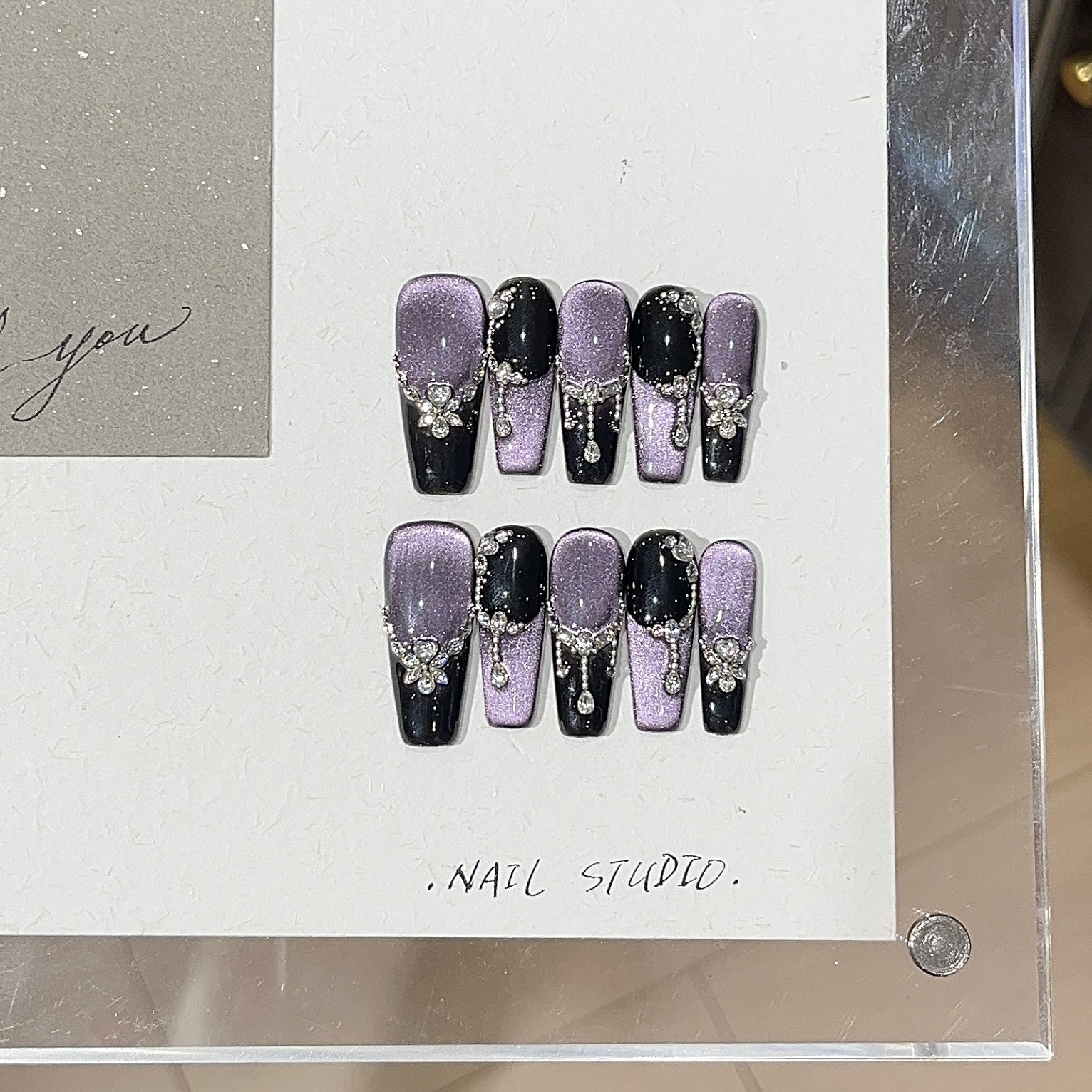 一只顾【紫罗兰梦境】高级轻奢风爆闪紫罗兰色猫眼锆石碎钻穿戴甲