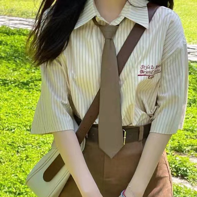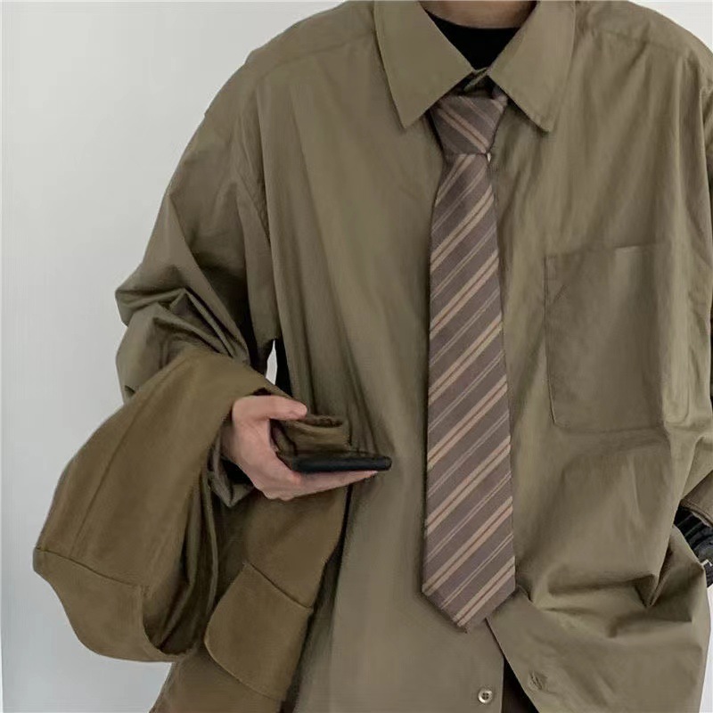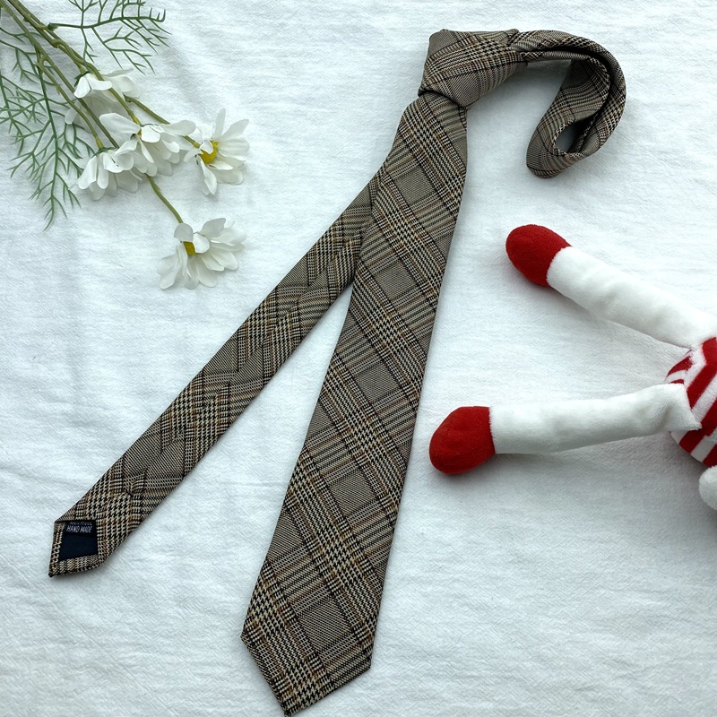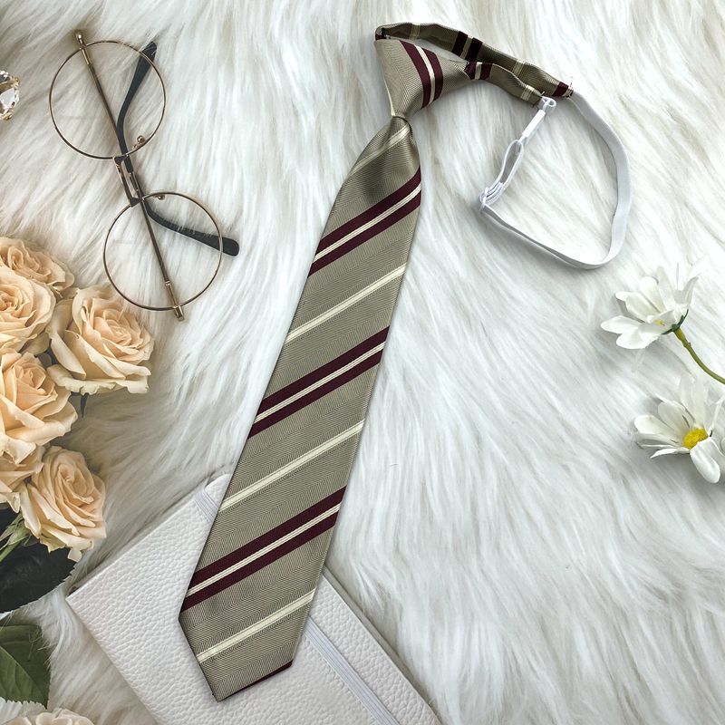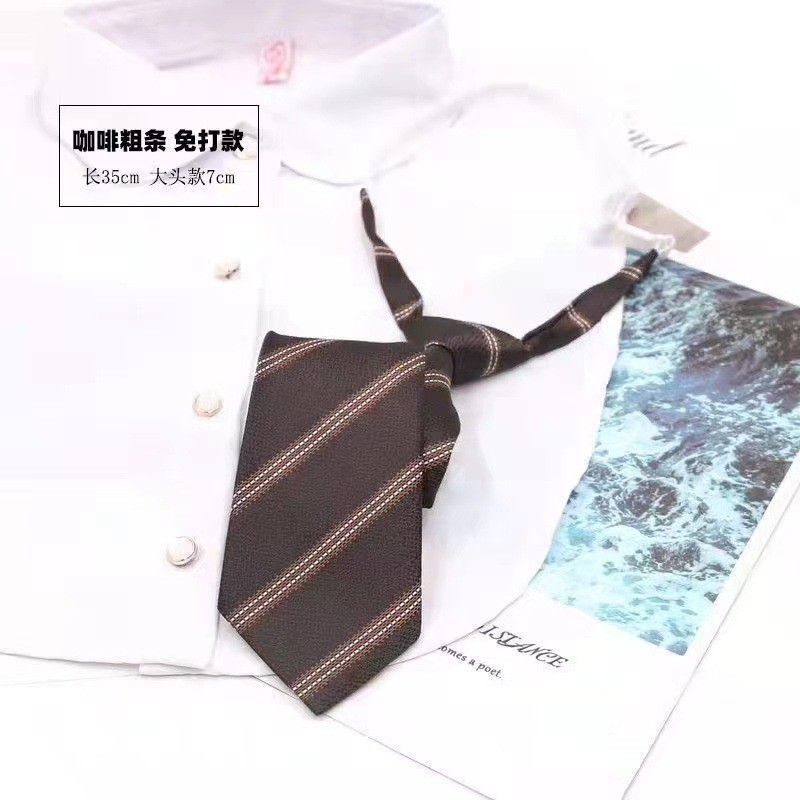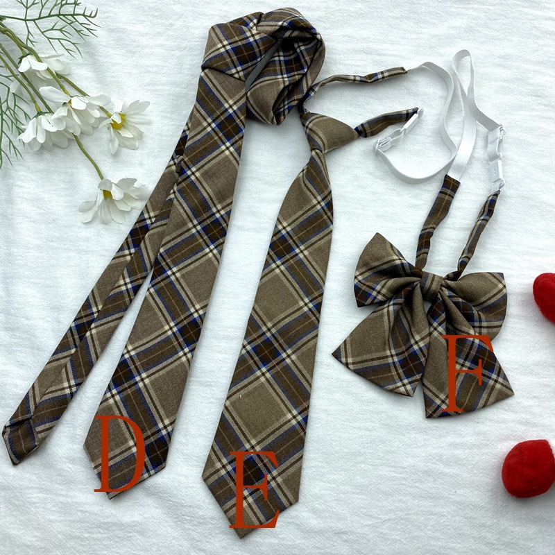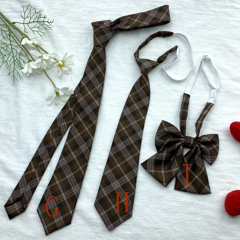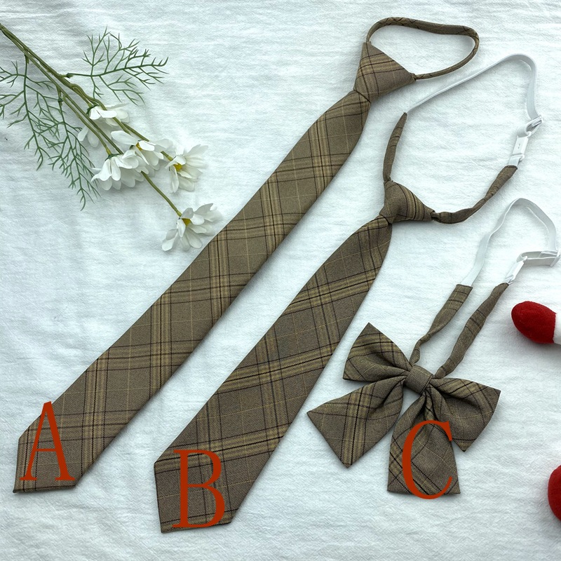 棕色复古领带免打格子条纹卡其色长款日系JK领结制服装饰蝴蝶结潮