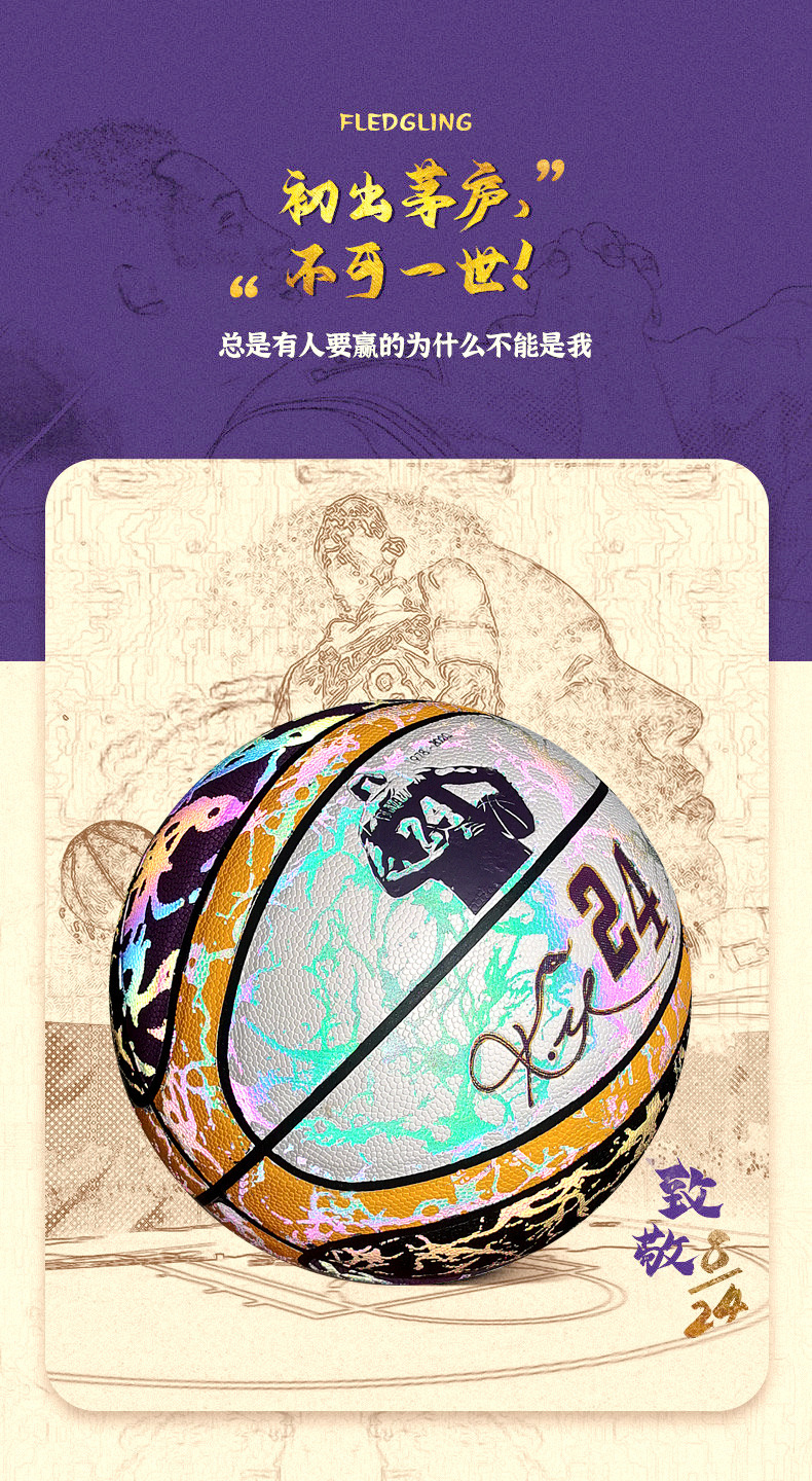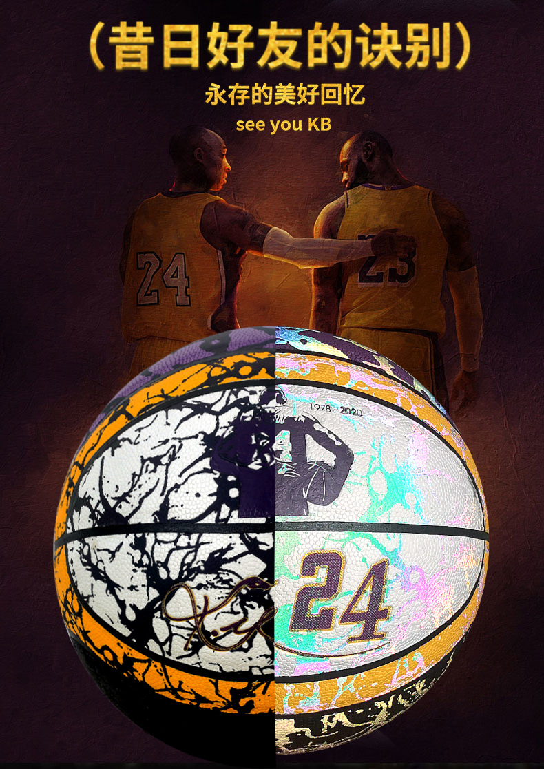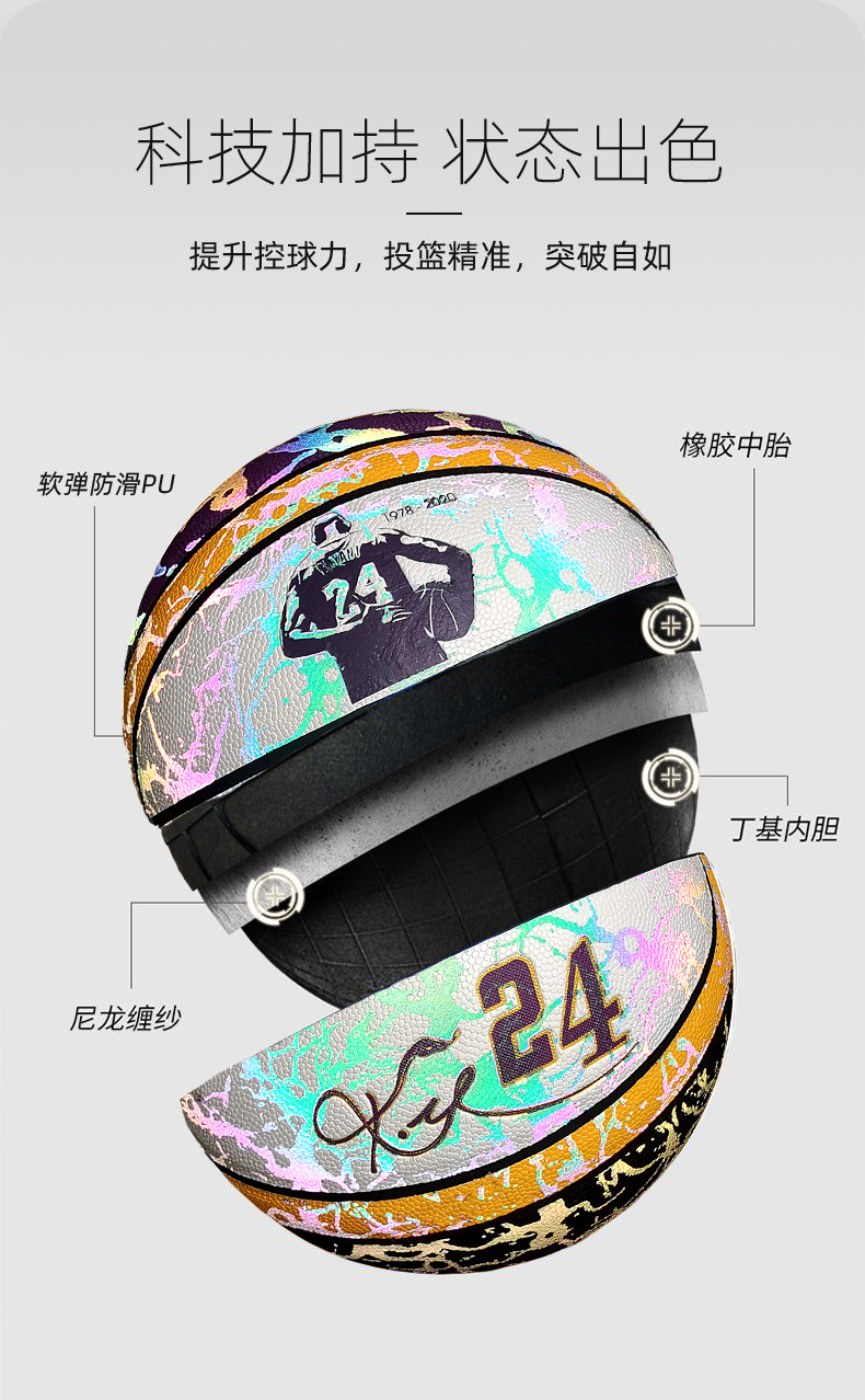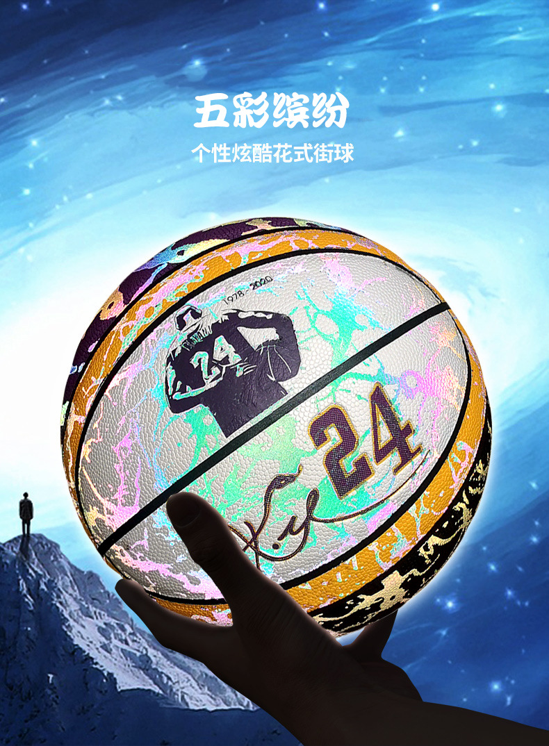 科比彩色反光夜光发光篮球7号成人比赛训练学生6号童5号一件代发
