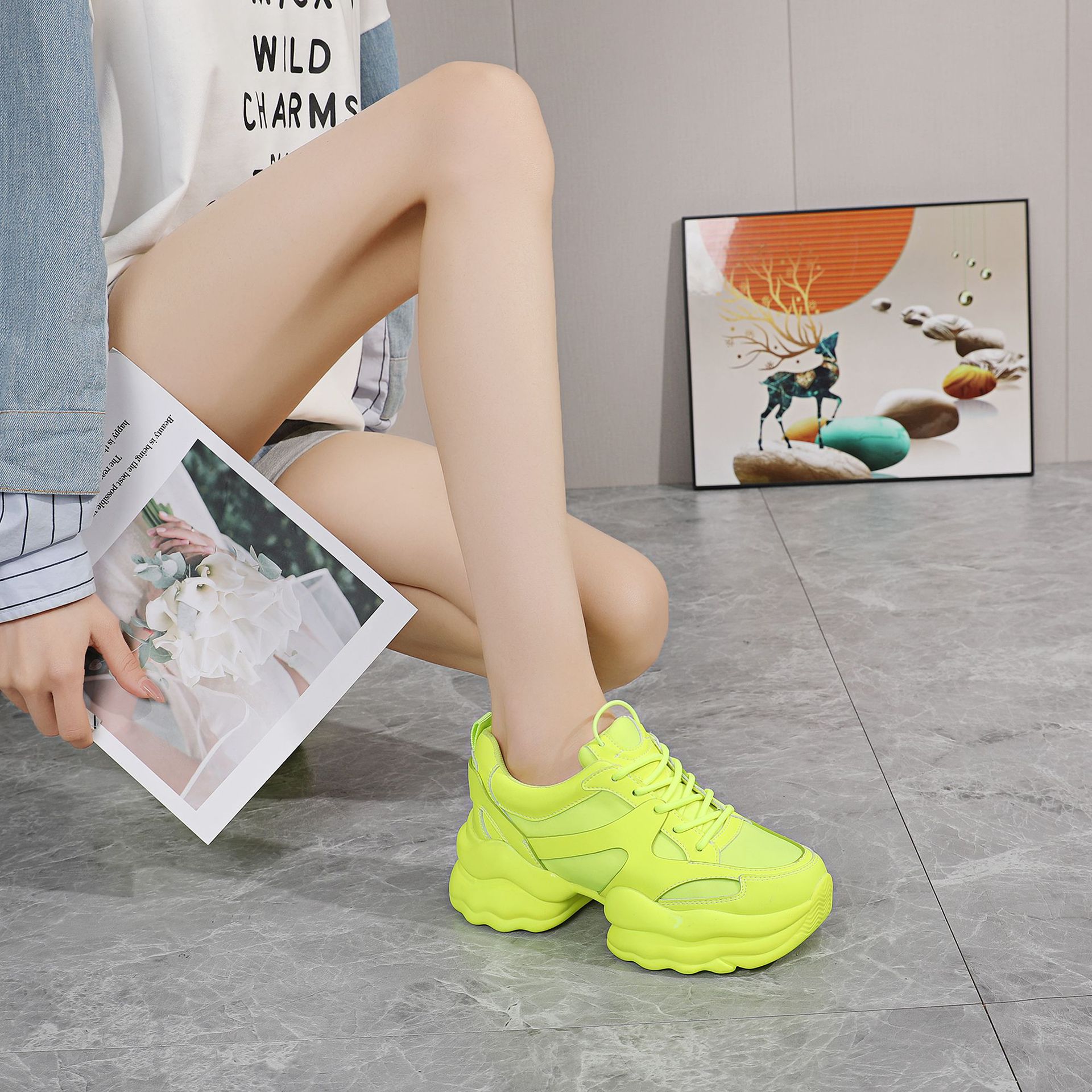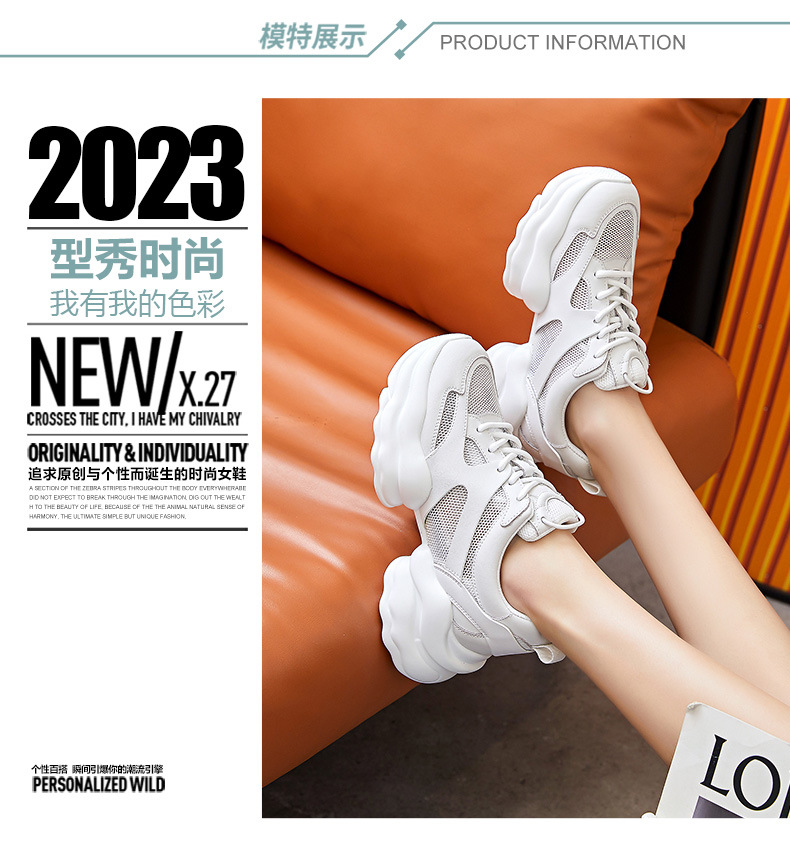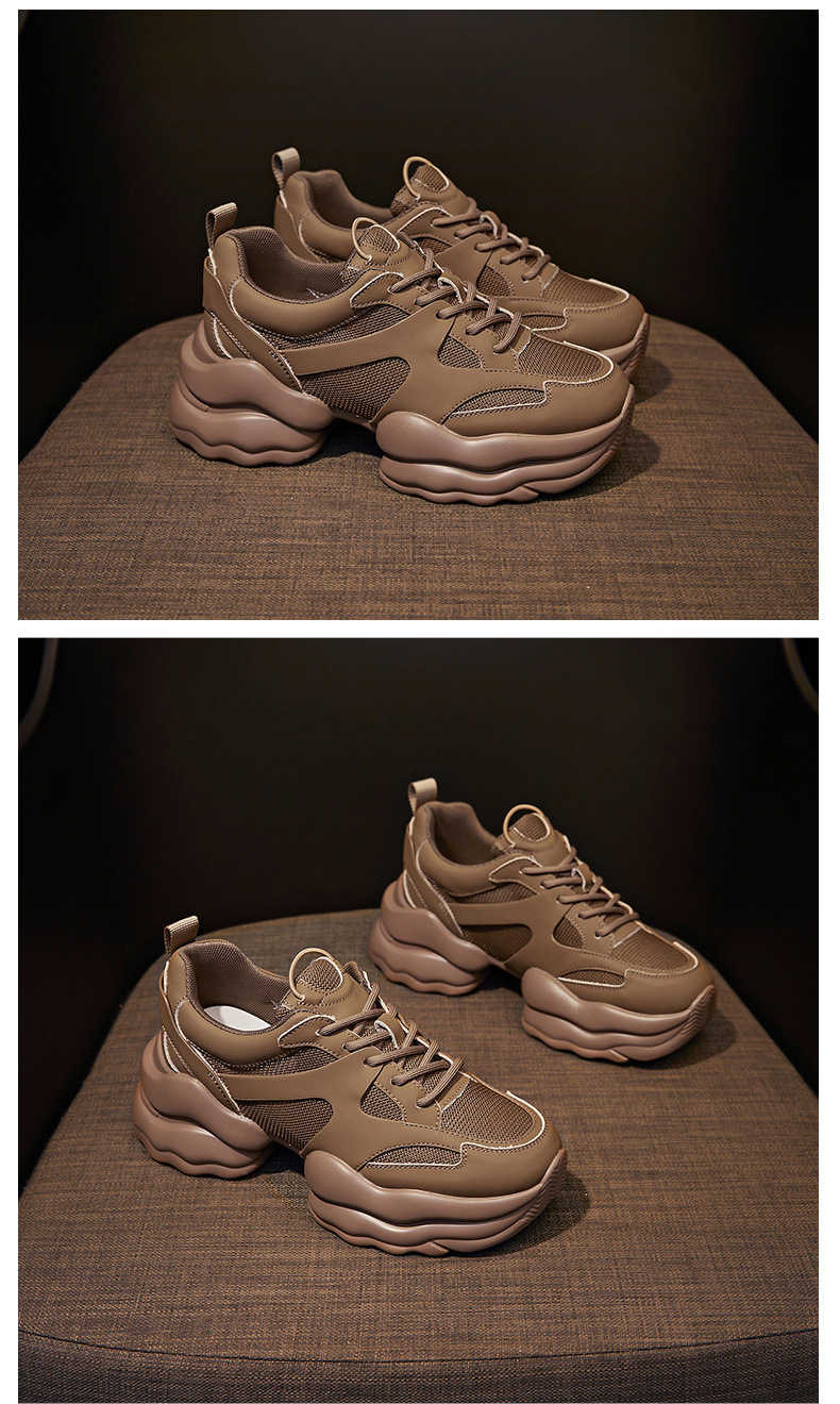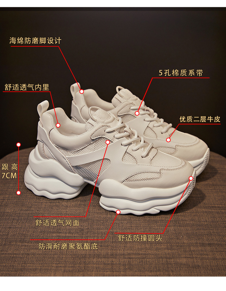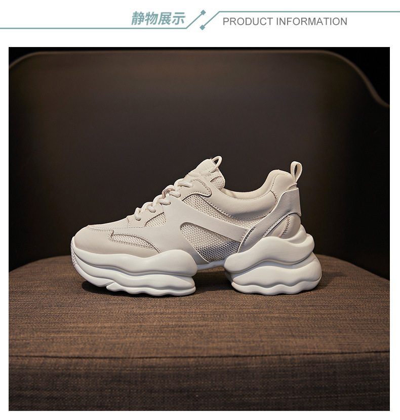 许妍同款老爹鞋椰椰奶冻2025云朵新款真皮厚底透网纯色运动鞋
