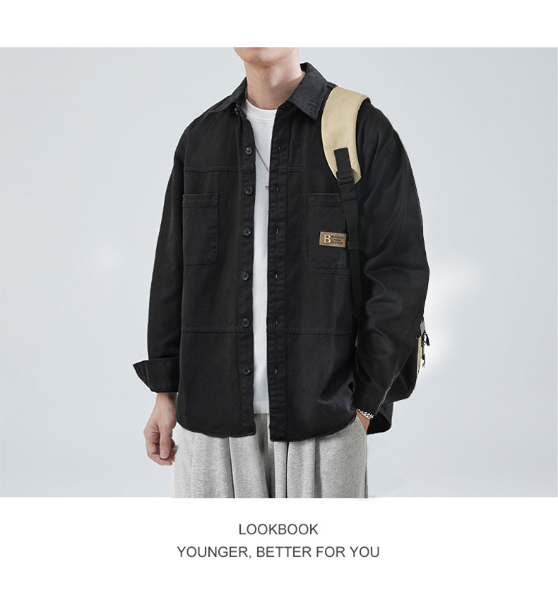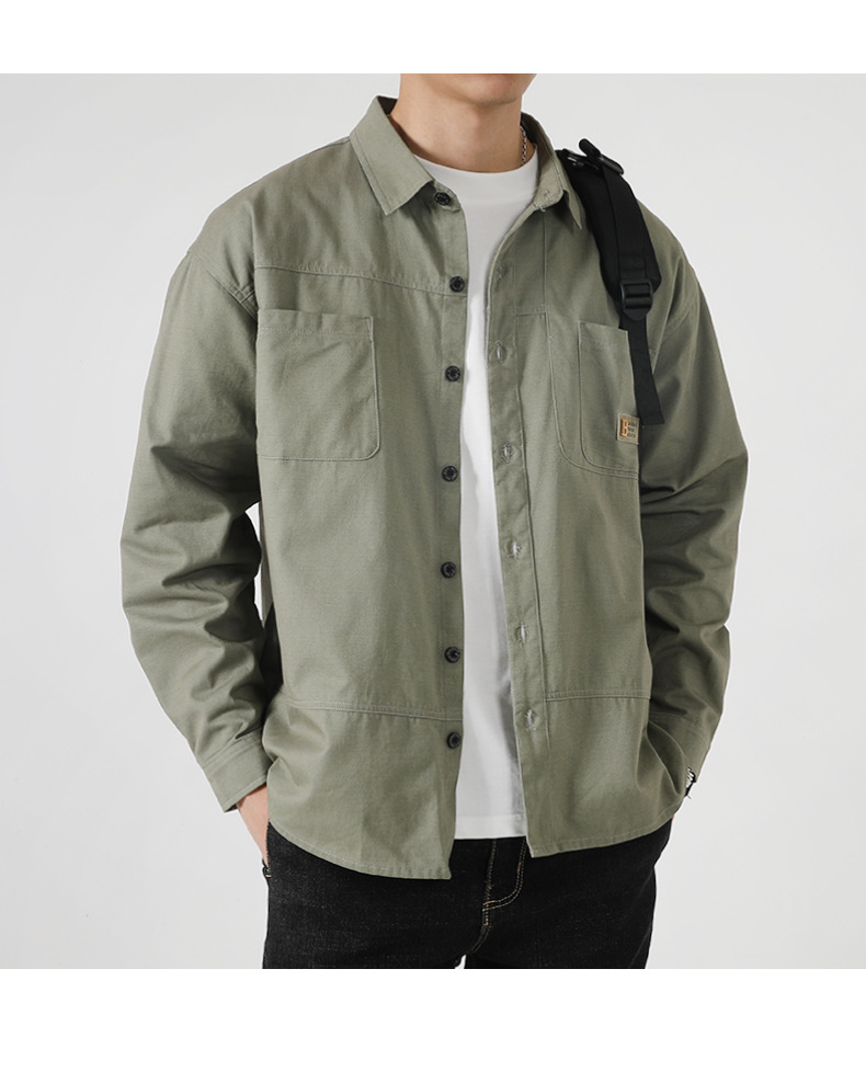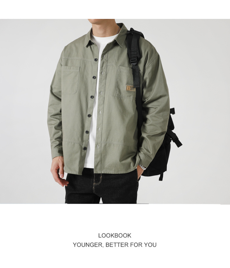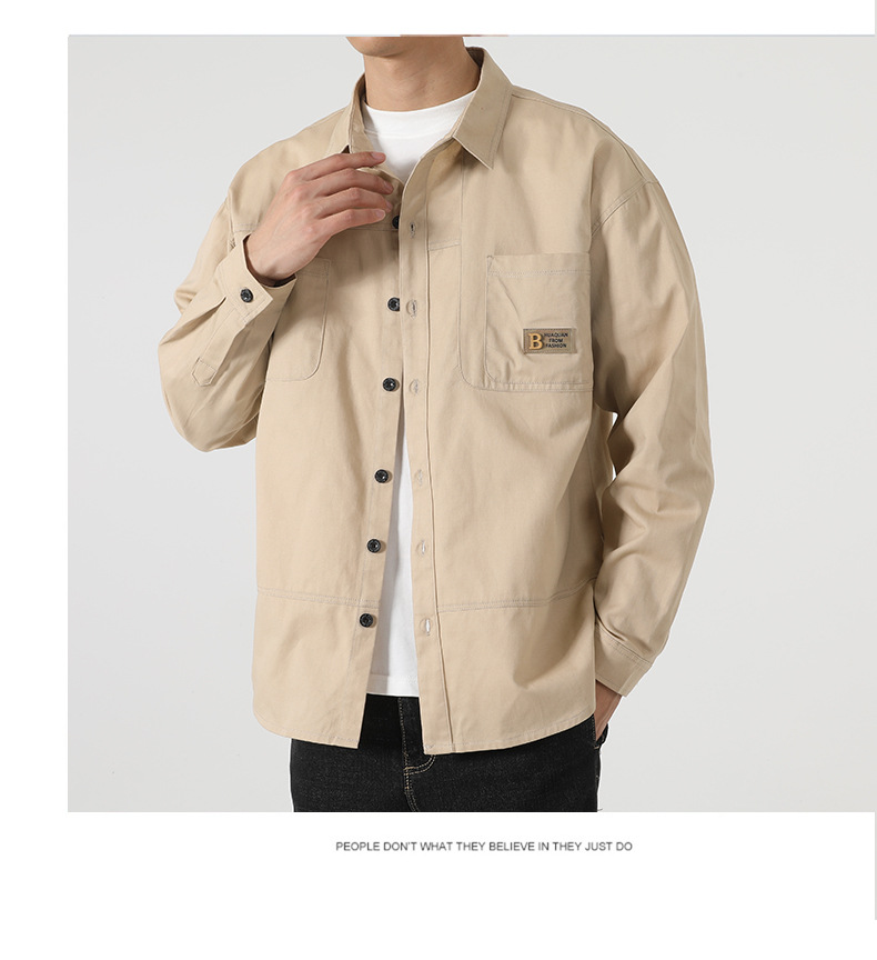 港风加肥加大短袖衬衫男春秋新款工装衬衣外套潮牌休闲上衣服男胖