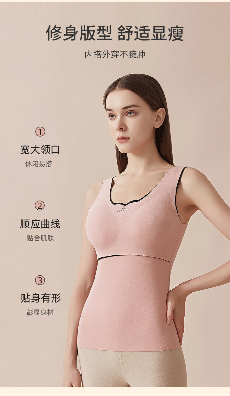 带胸垫秋冬亲氧2.0发热德绒保暖背心女加绒加厚修身打底保暖内衣