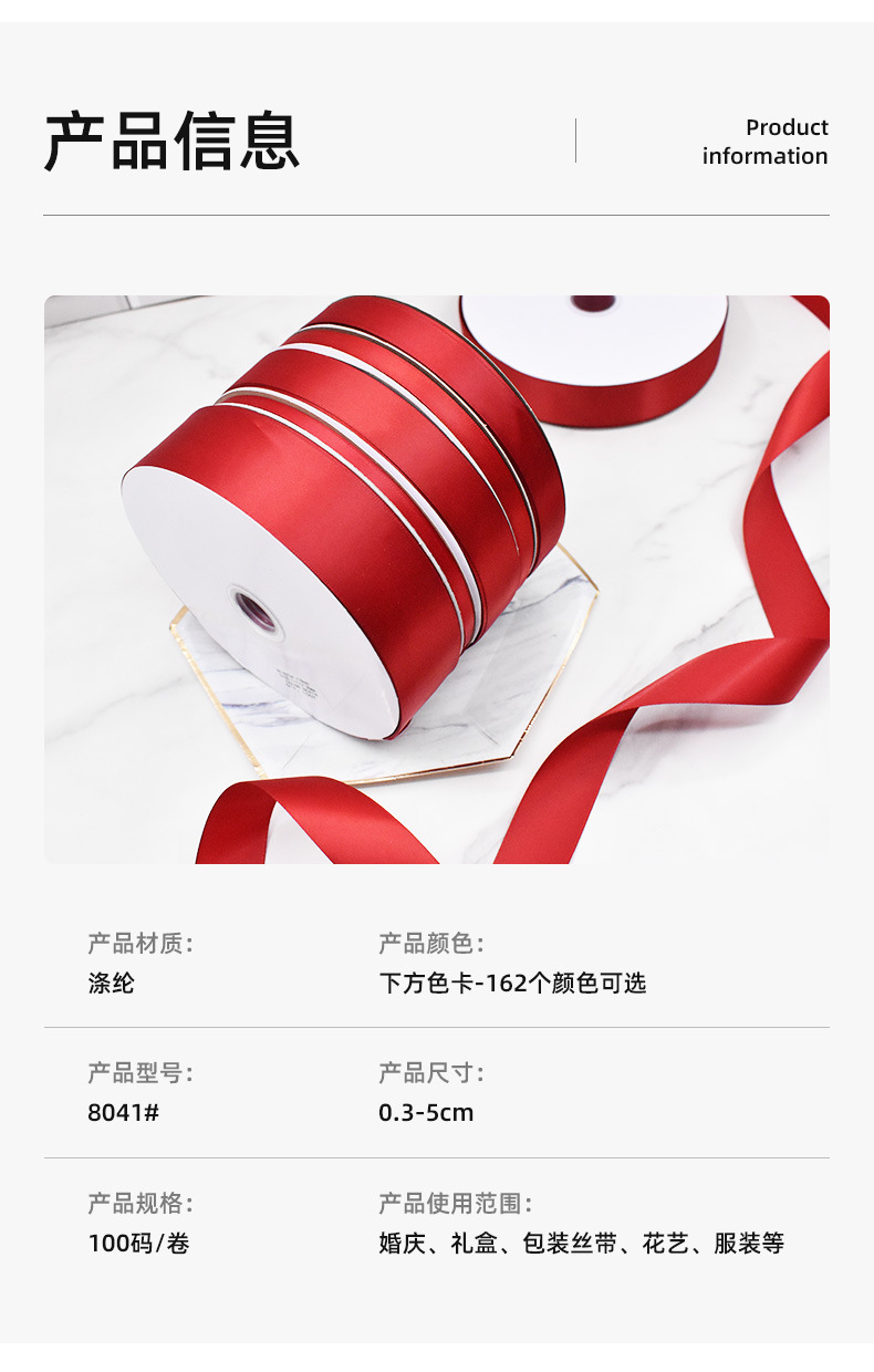 涵帆织带酒红色丝带0.3~5CM宽礼品鲜花装饰绸带手工DIY蝴蝶结彩带