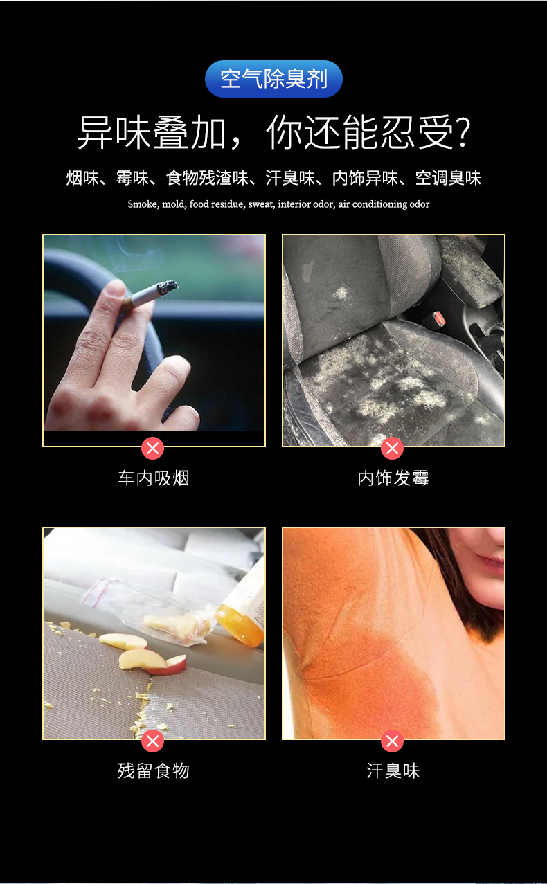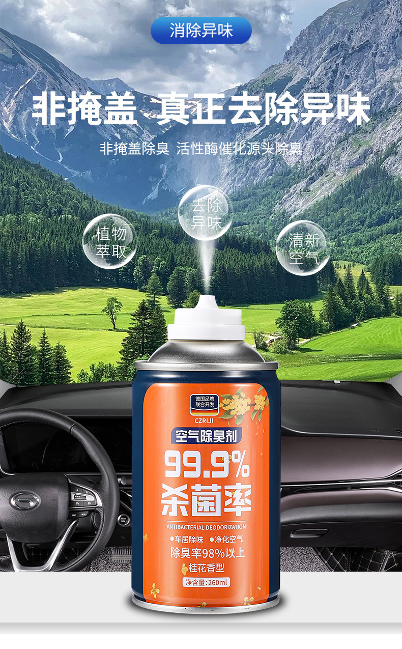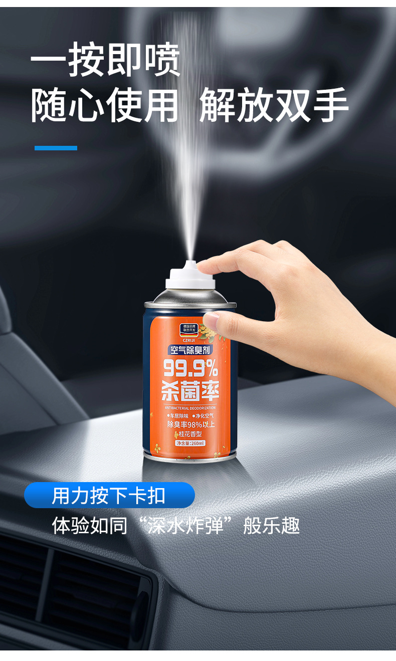 汽车除臭剂车载香水空气清新剂车内用一键杀菌香薰喷雾除异味室内