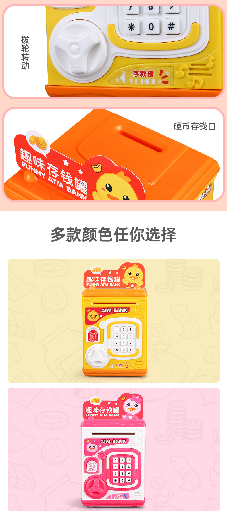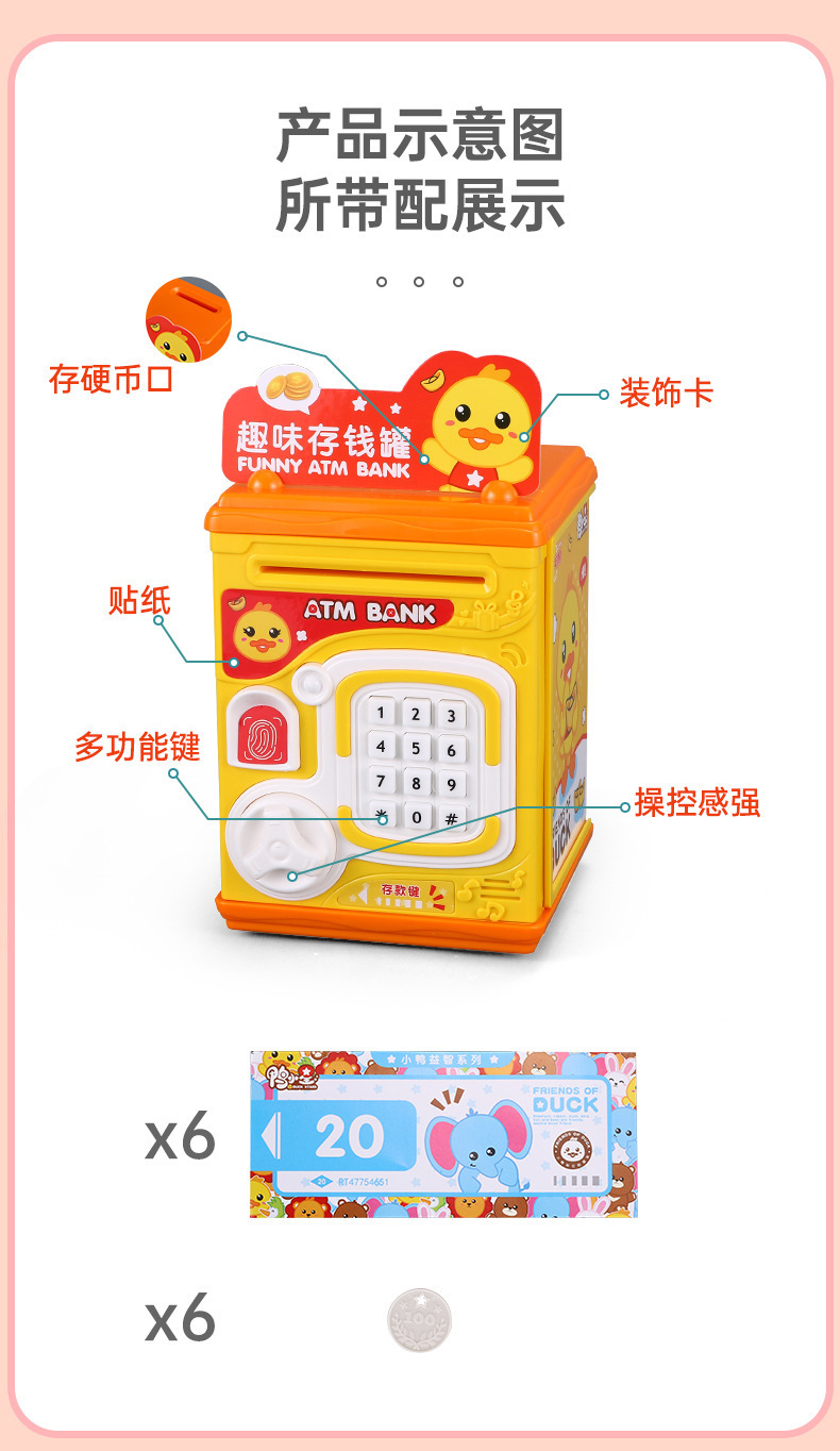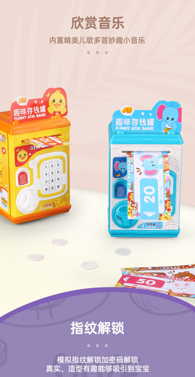 儿童卡通智能存钱罐仿真指纹开锁音效男女孩益智过家家礼品玩具
