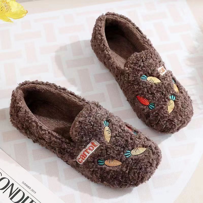 2025冬季加绒刺绣棉鞋新款保暖妈妈棉鞋平底防滑休闲时尚棉鞋代发