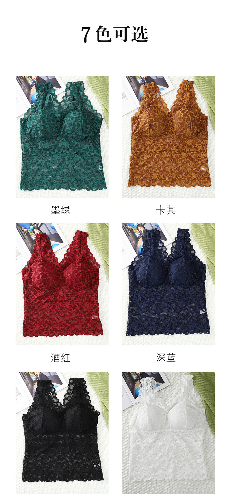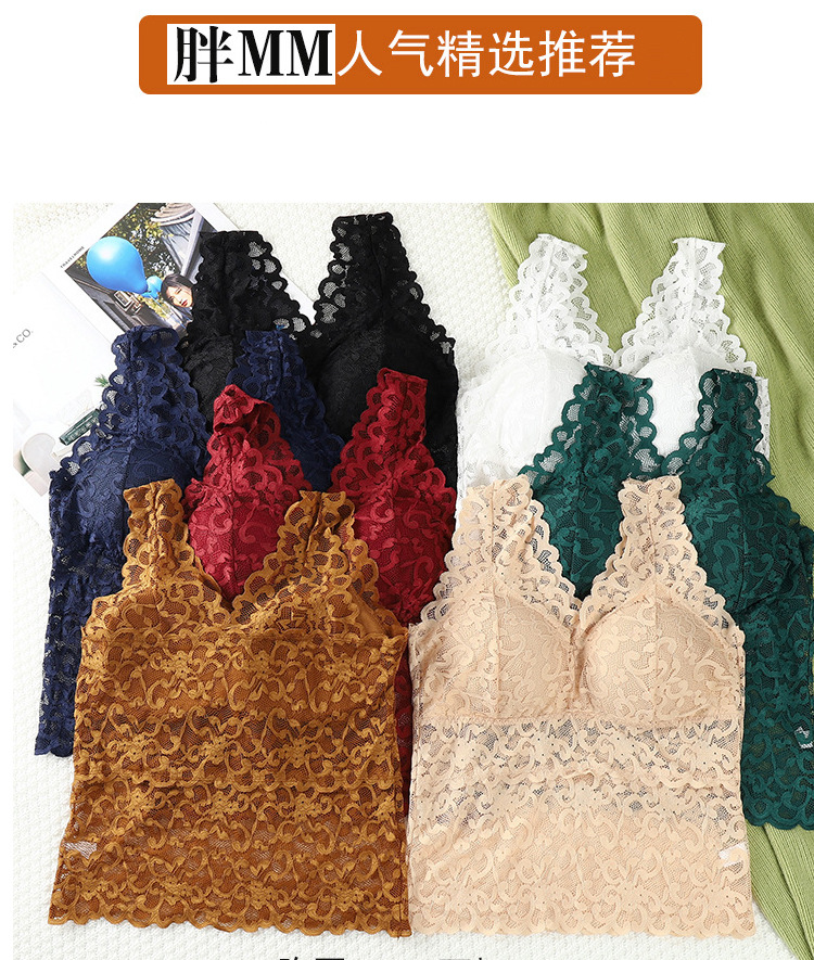蕾丝背心女加肥加大码胖MM夏季薄款长款美背上衣吊带胸垫内搭打底