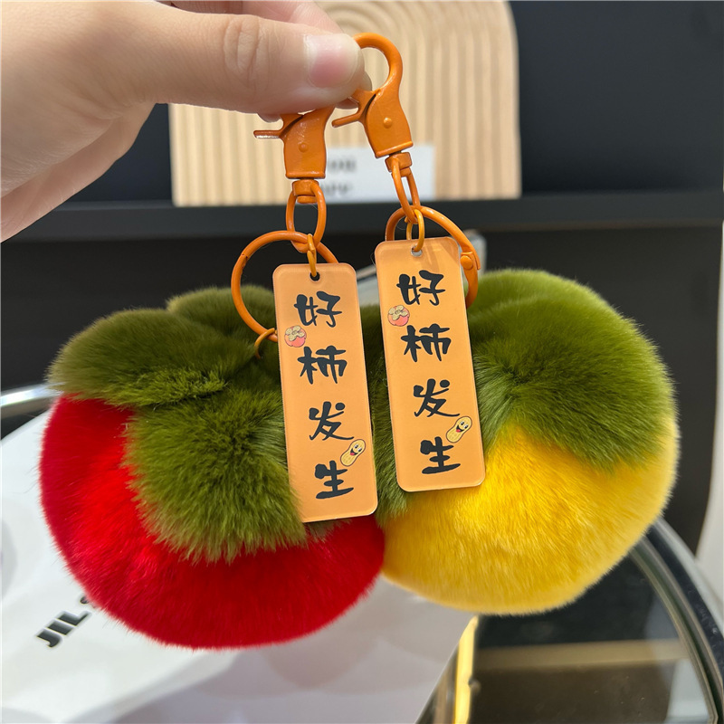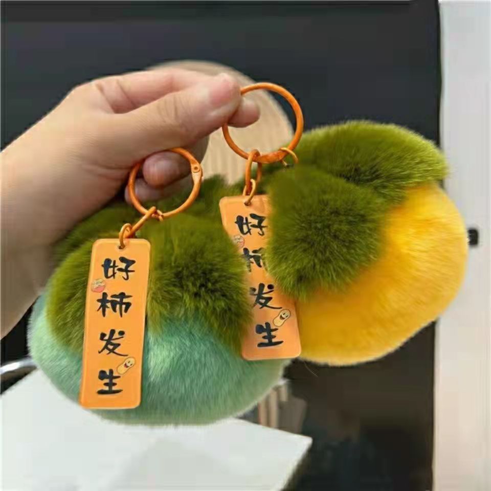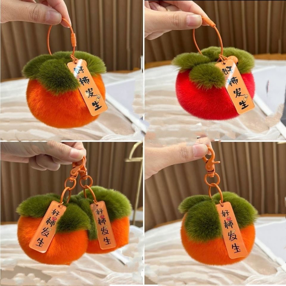 新款仿獭兔毛diy柿子挂件好事发生钥匙扣可爱挂饰毛绒包配饰批发