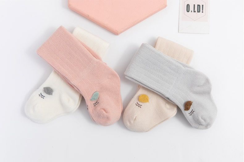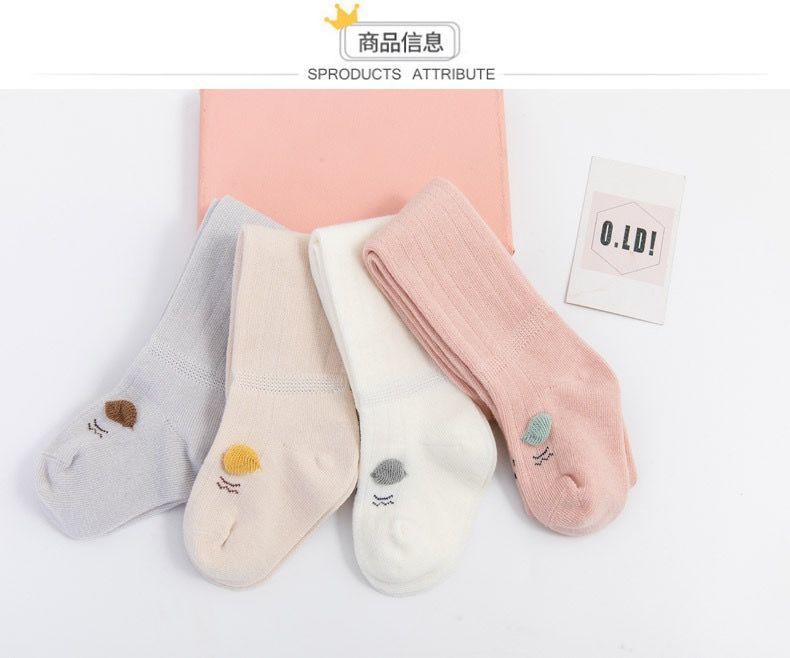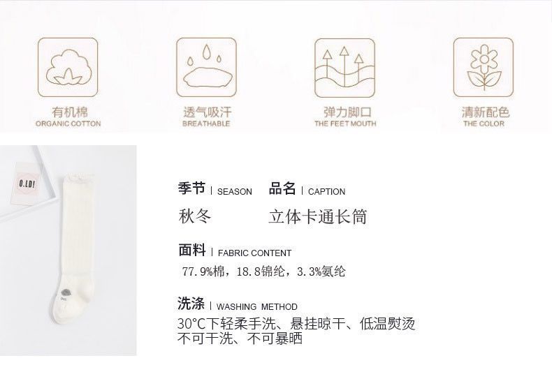 婴儿袜子宝宝春秋过膝袜男女新生儿童松口不勒腿纯色棉袜卡通可爱