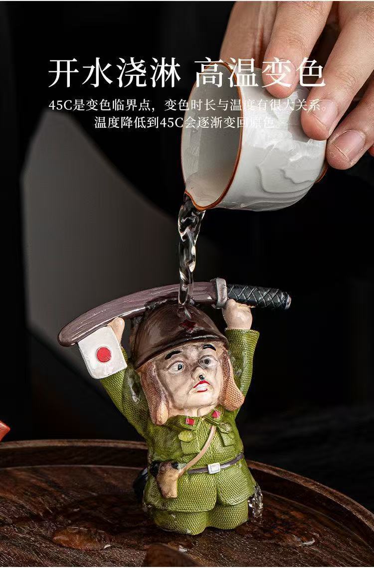 日本人下跪投降变色茶宠摆件精品茶玩茶桌茶盘装饰品摆件茶具配件