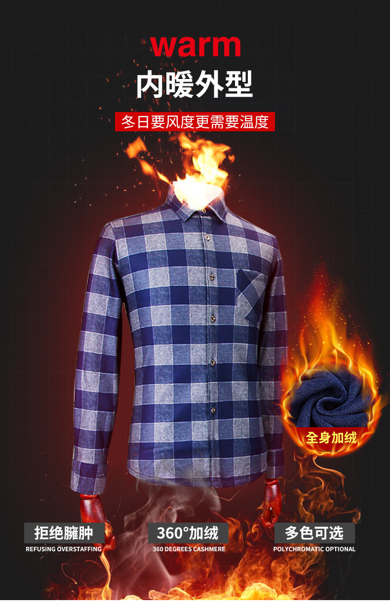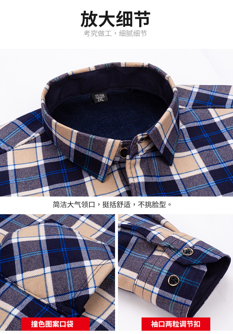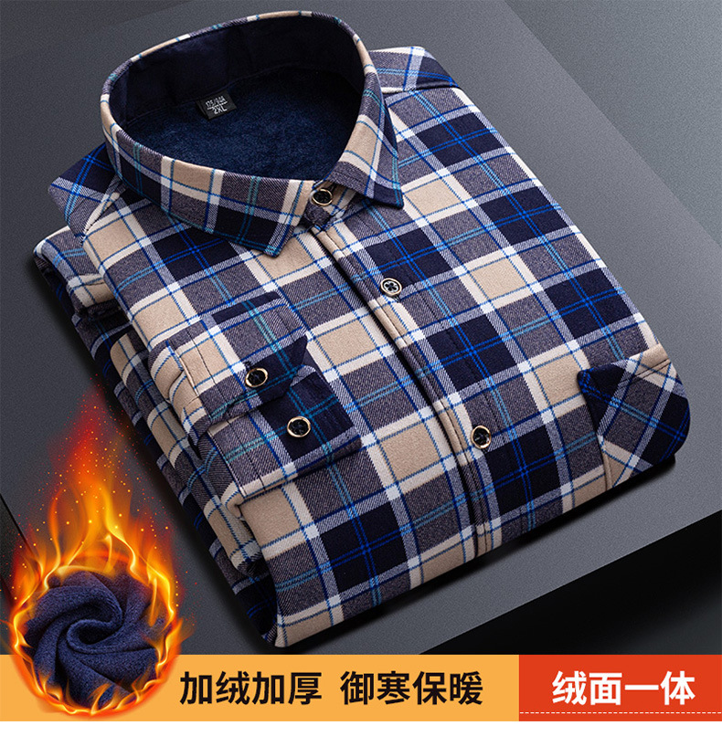 男士保暖衬衫长袖加绒加厚冬季衬衣爸爸衣服外套格子衬衫工厂直销