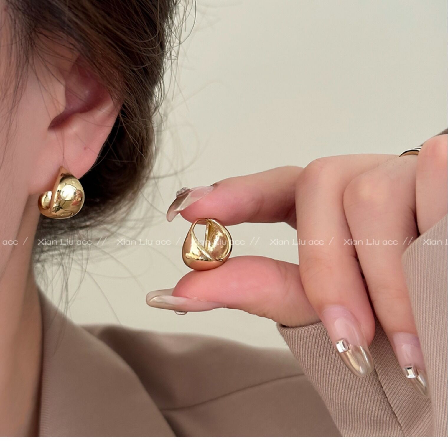 冷淡风扭曲金属耳环女高级小众感几何素圈耳扣百搭夸张通勤耳饰