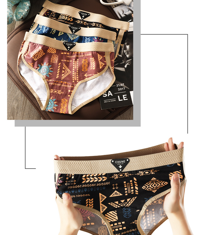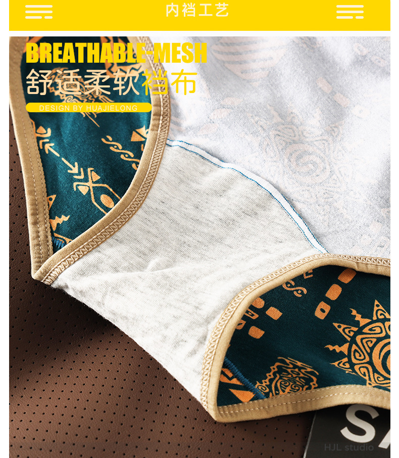 华杰龙新款棉质女士内裤印花批发中腰女大码透气女士三角裤可代发