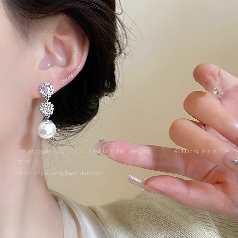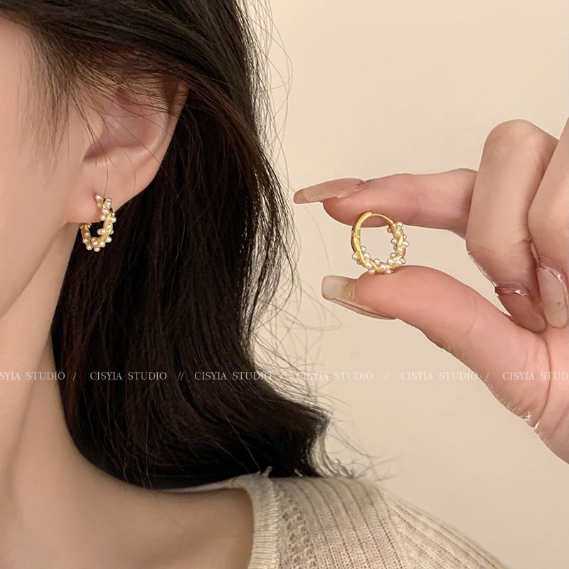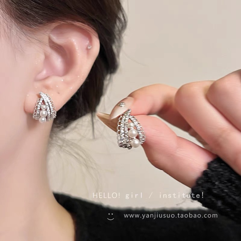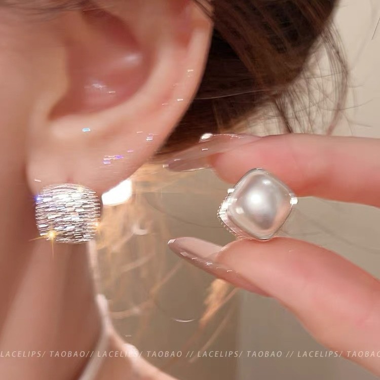 施家925银针奶白珍珠耳钉气质百搭高级感轻奢耳环简约养耳洞耳饰