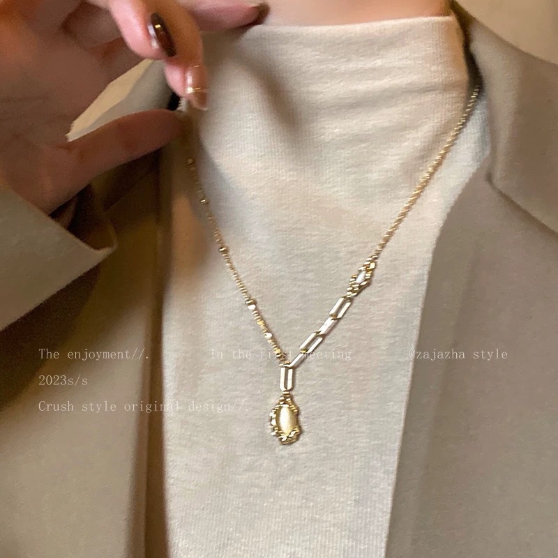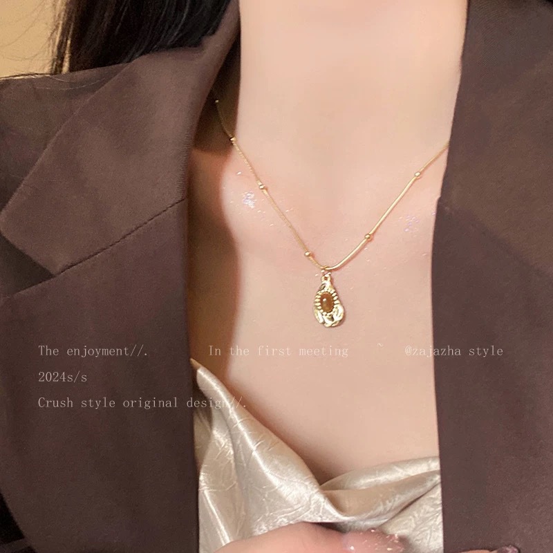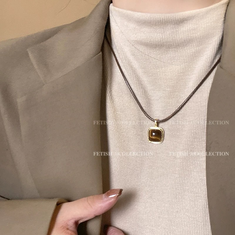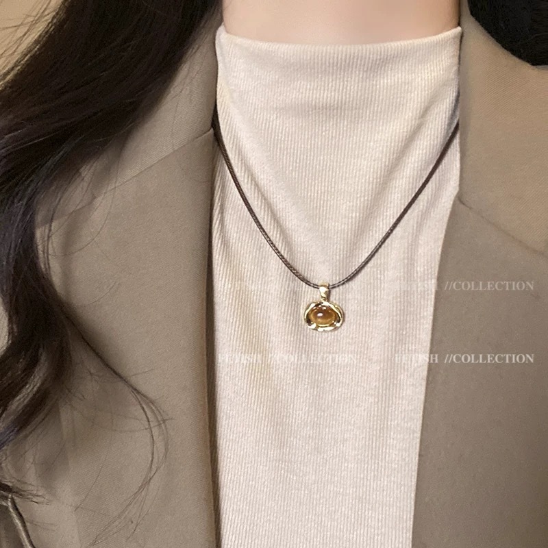 虎眼石天然编织项链女款秋冬美拉德中古配饰2024新款高级感毛衣链
