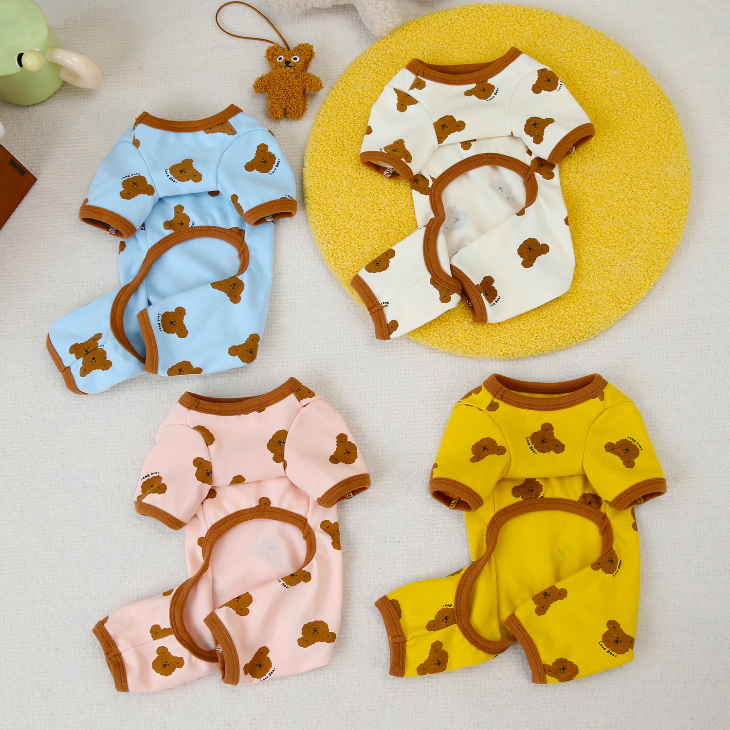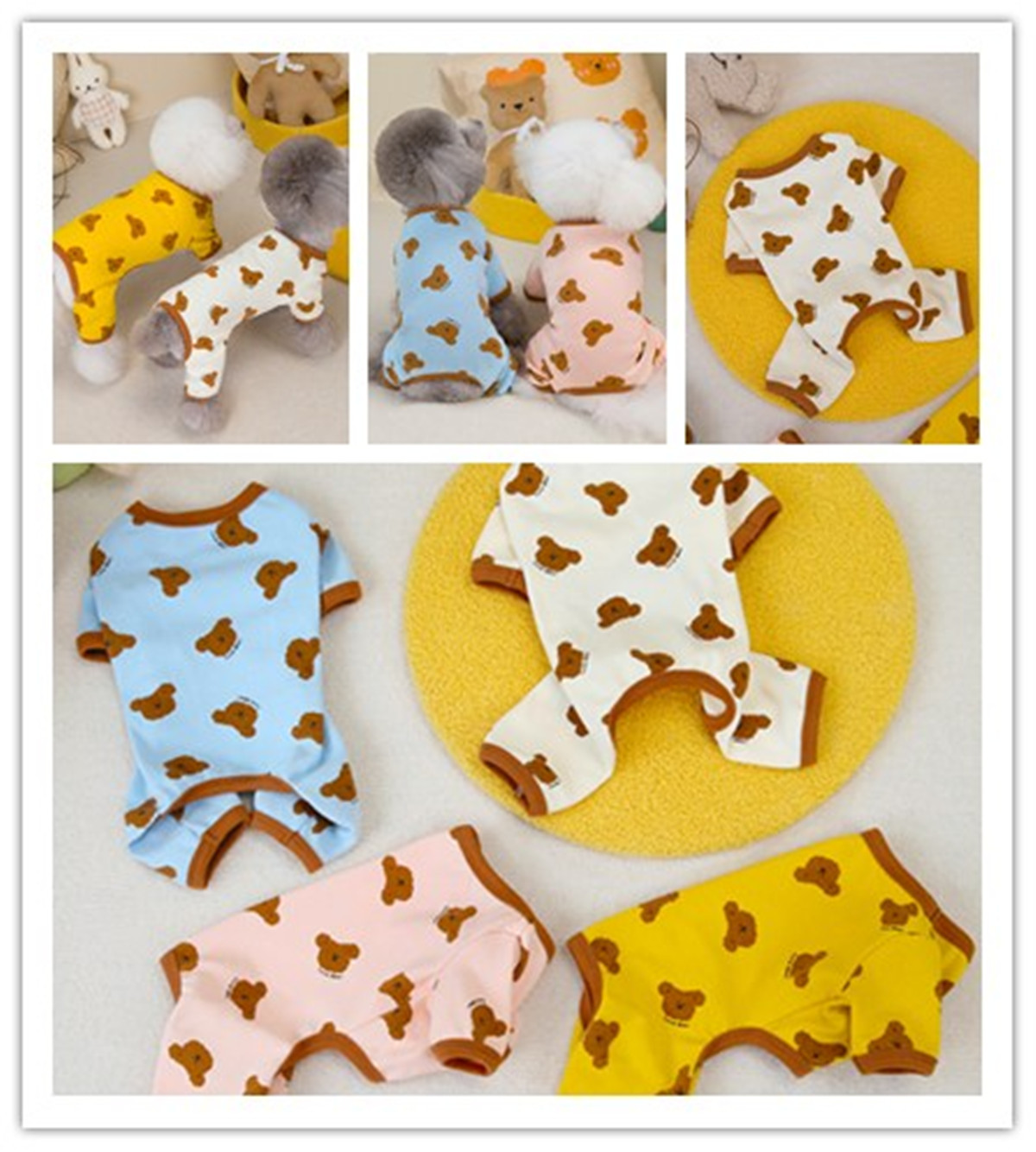 宠物用品批发狗衣服猫小型犬衣服舒适弹性24四色印花熊四腿家居服