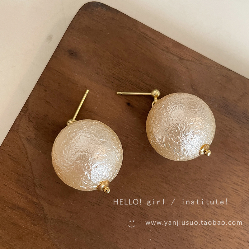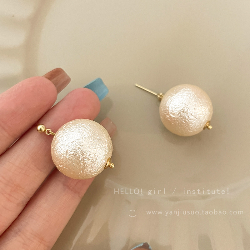 赫本风~mona同款棉花珍珠耳环2023年新款潮耳饰港风复古气质耳钉