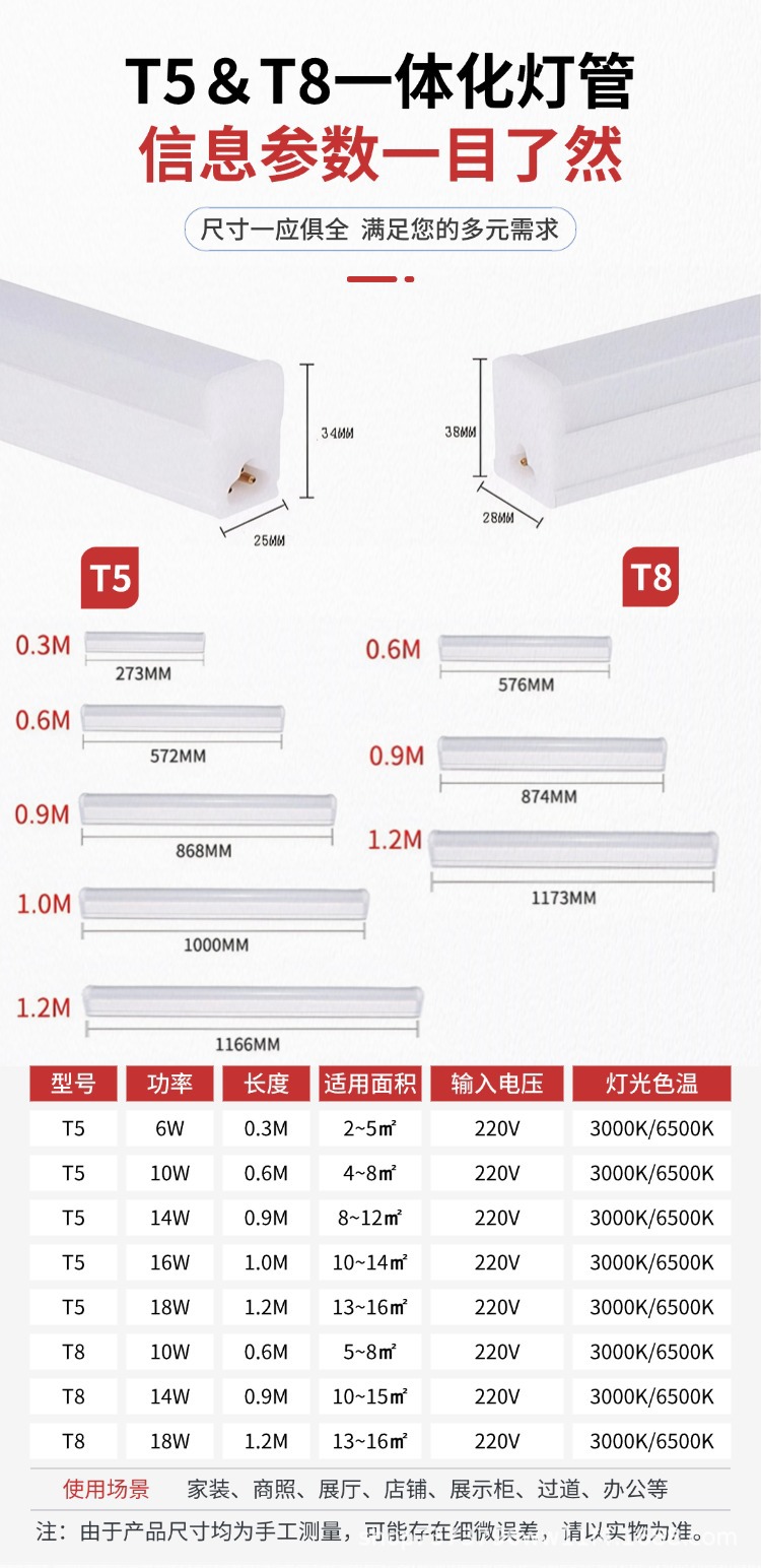 LED一体化全塑灯管无影一体支架灯LED全塑日光灯管T5T8一体化灯管