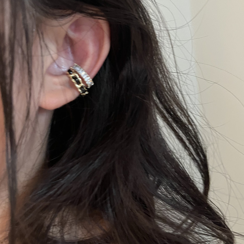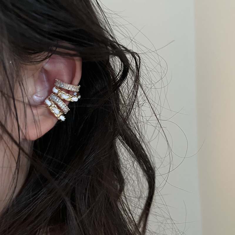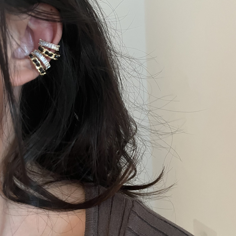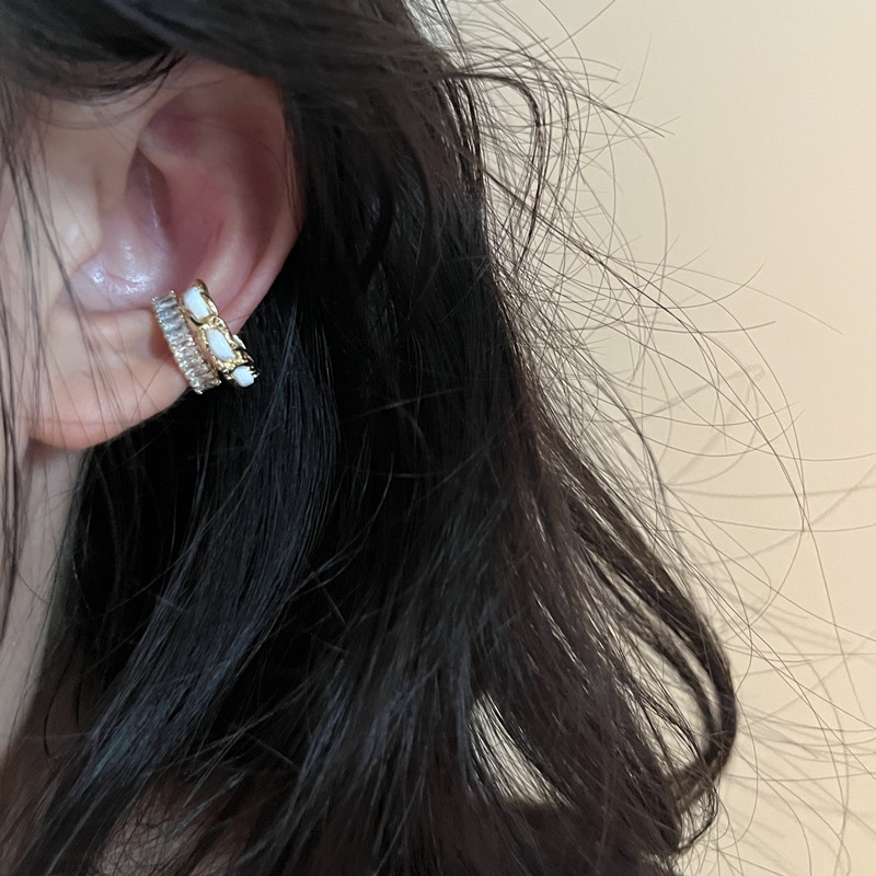 法式小香风双层锆石耳骨夹高级感无痛耳夹无耳洞耳环耳饰几何时尚